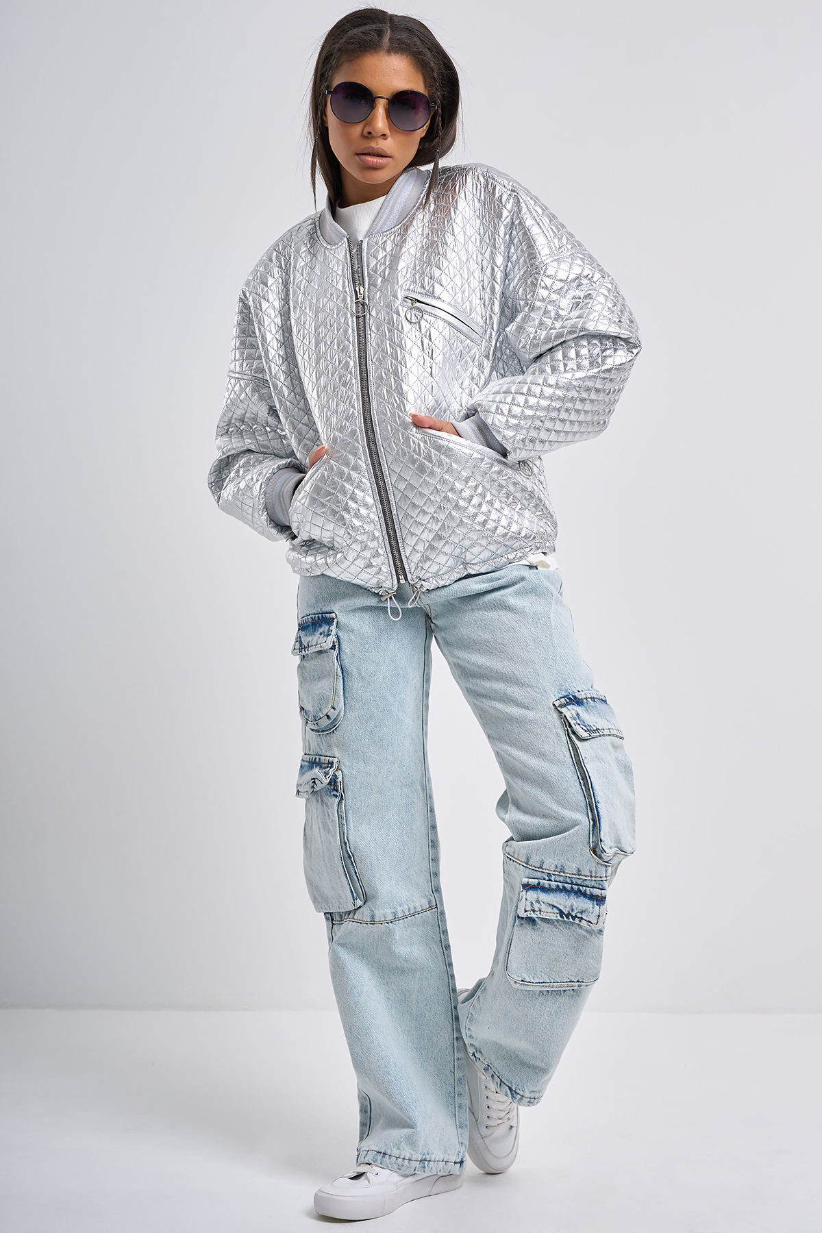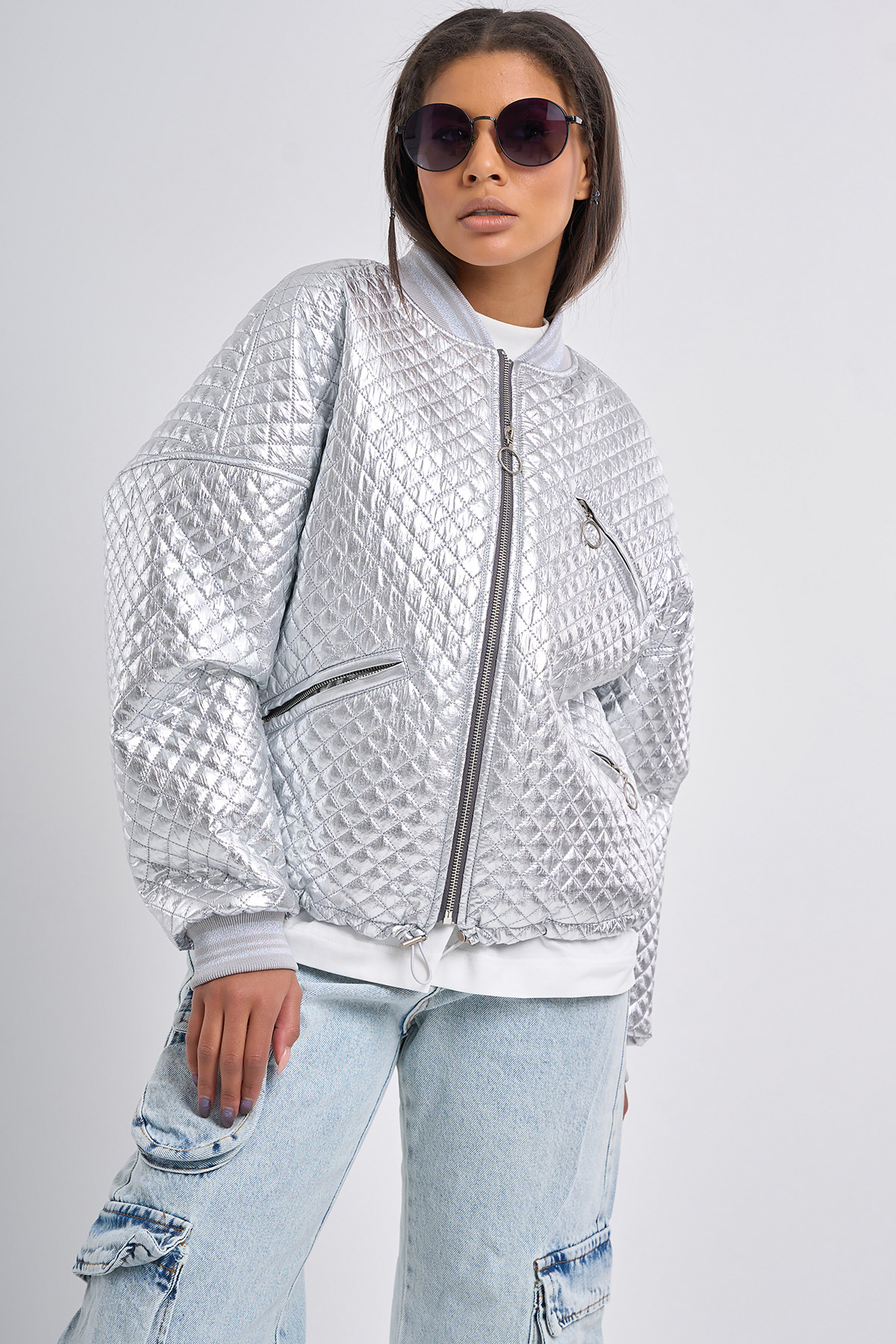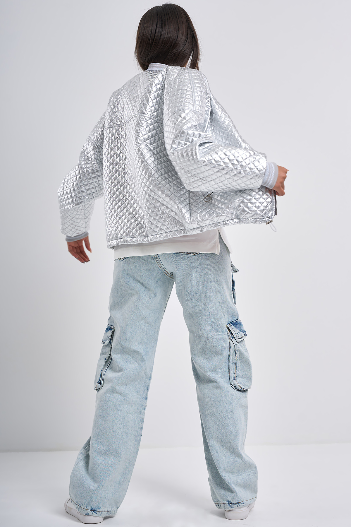 Бомбер из курточной ткани утепленный серебристый