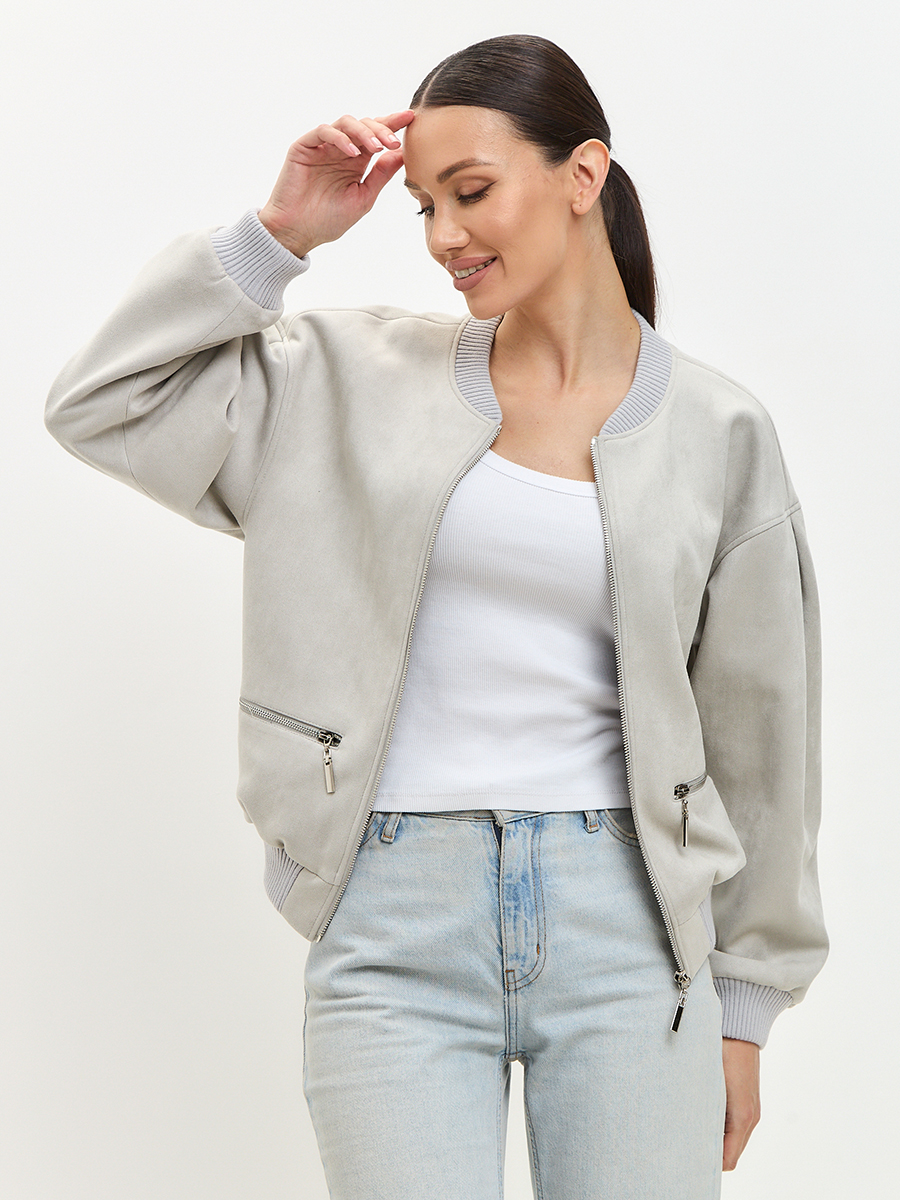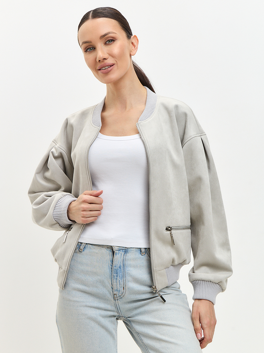 Бомбер из замши серый