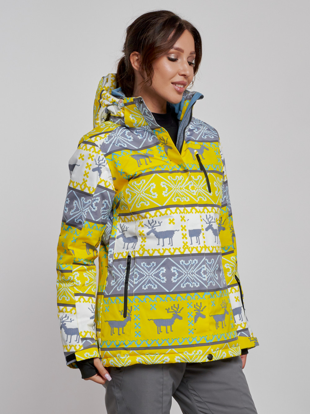 Горнолыжная куртка женская зимняя желтого цвета 22302J