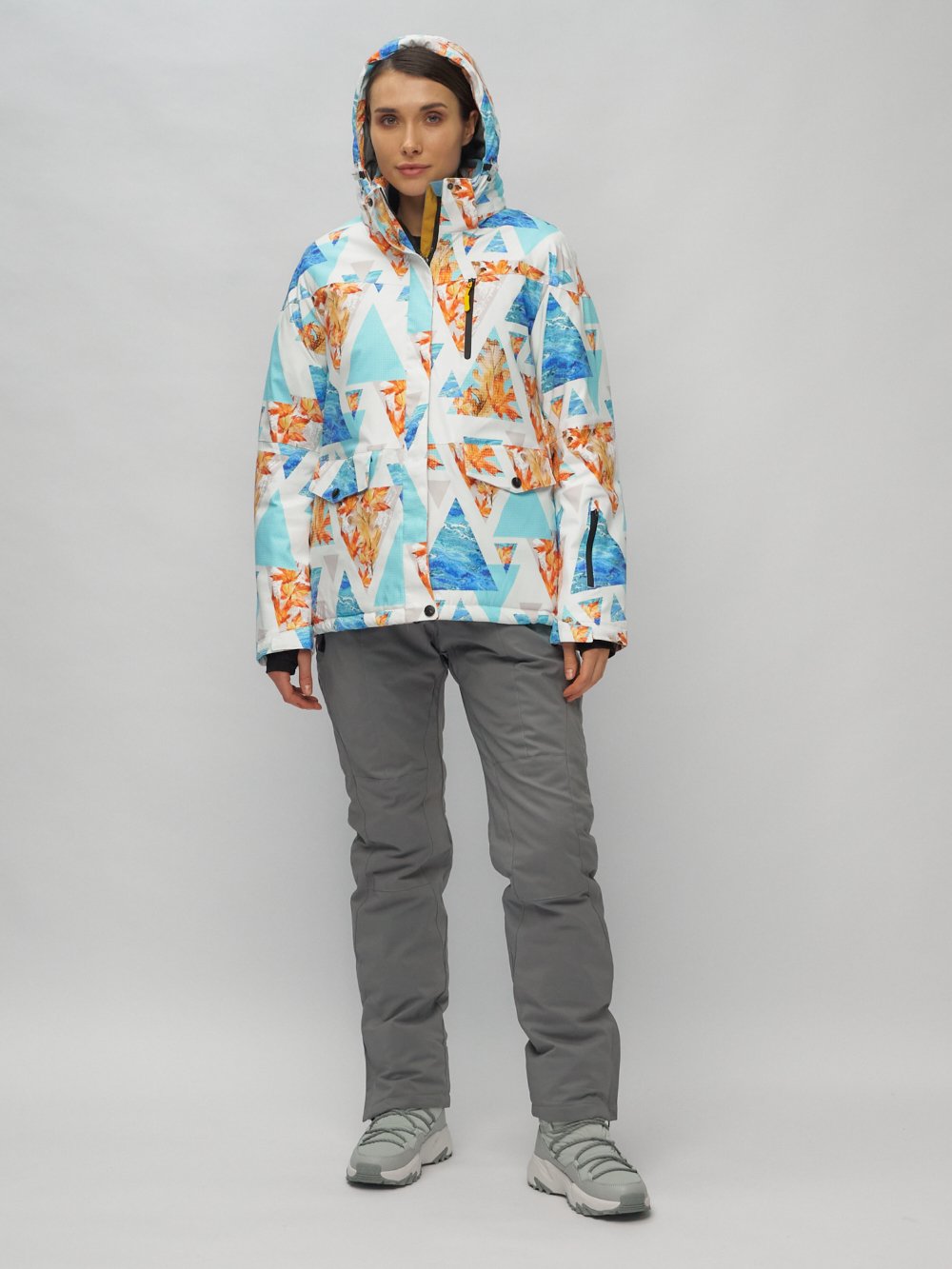 Женский зимний комплект верхней одежды состоит из горнолыжных брюк с бретелями и привлекательной, полуприталенной куртки с печатным геометрическим принтом. Полукомбинезон женский зимний имеет съемные бретели и спинку, снегозащитные гамаши с эластичной полосой - внутри штанины, расширитель штанин на молнии, застежку крючок, кнопку и молнию, боковые карманы на прорезиненной молнии (водоотталкивающая). Внимание! Бретели полукомбинезона в заказе могут отличаться цветом и принтом.