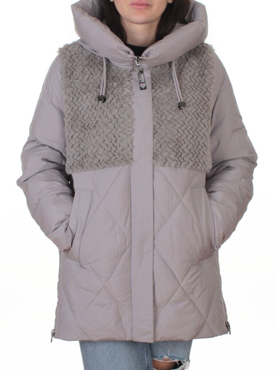 M-8800 GRAY/BEIGE Куртка зимняя стеганная женская (150 гр. холлофайбер)