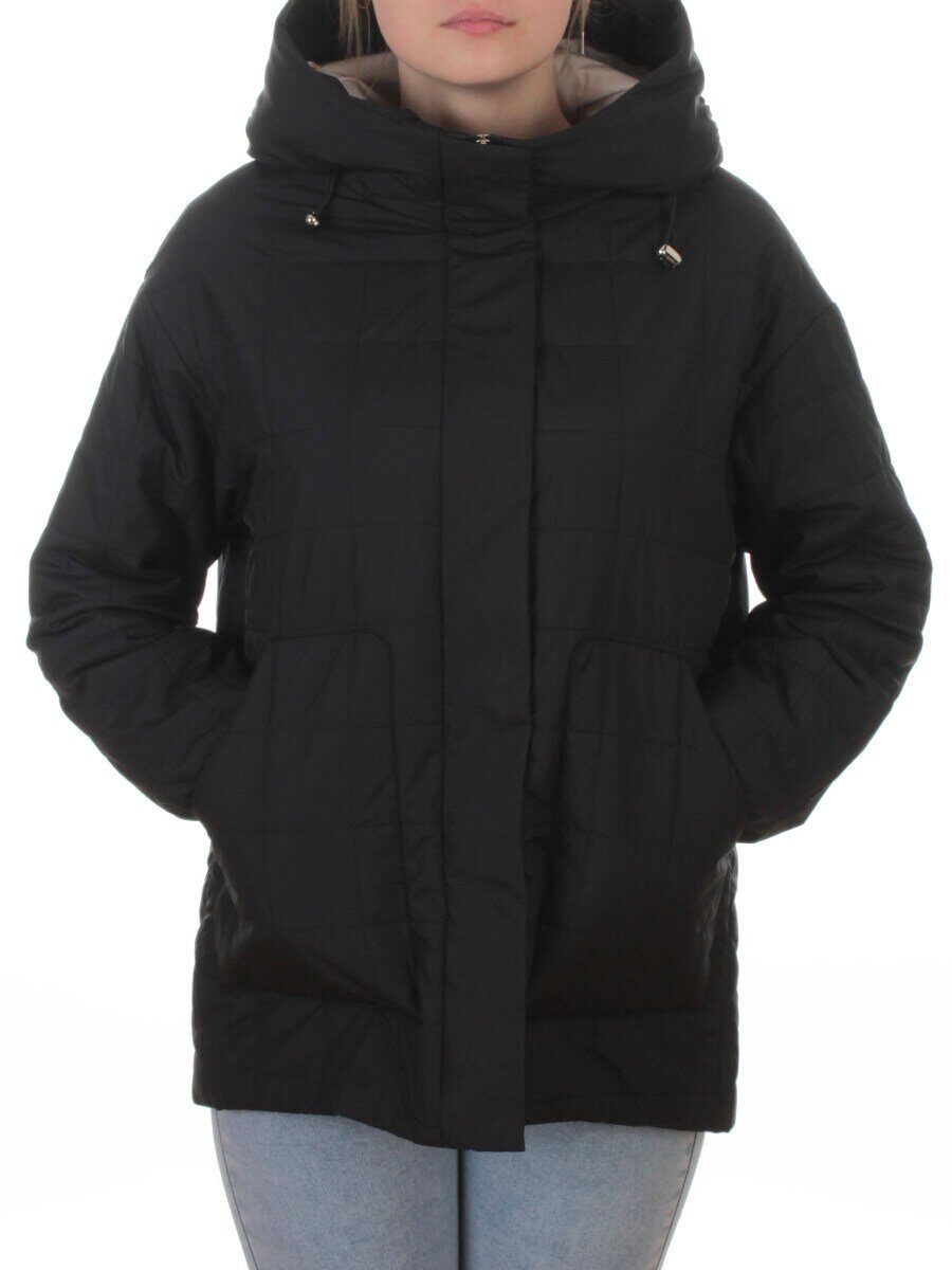 9607 BLACK Куртка стеганная демисезонная женская (100 гр. холлофайбер)
