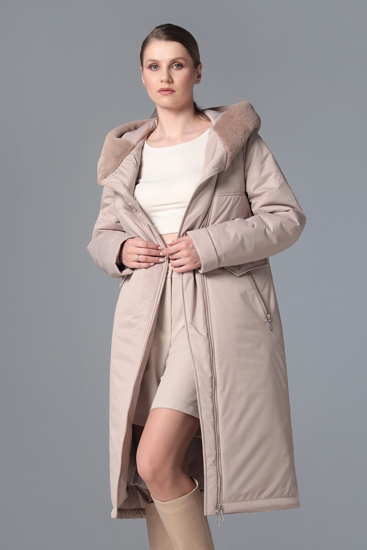 Зимнее пальто на молнии.