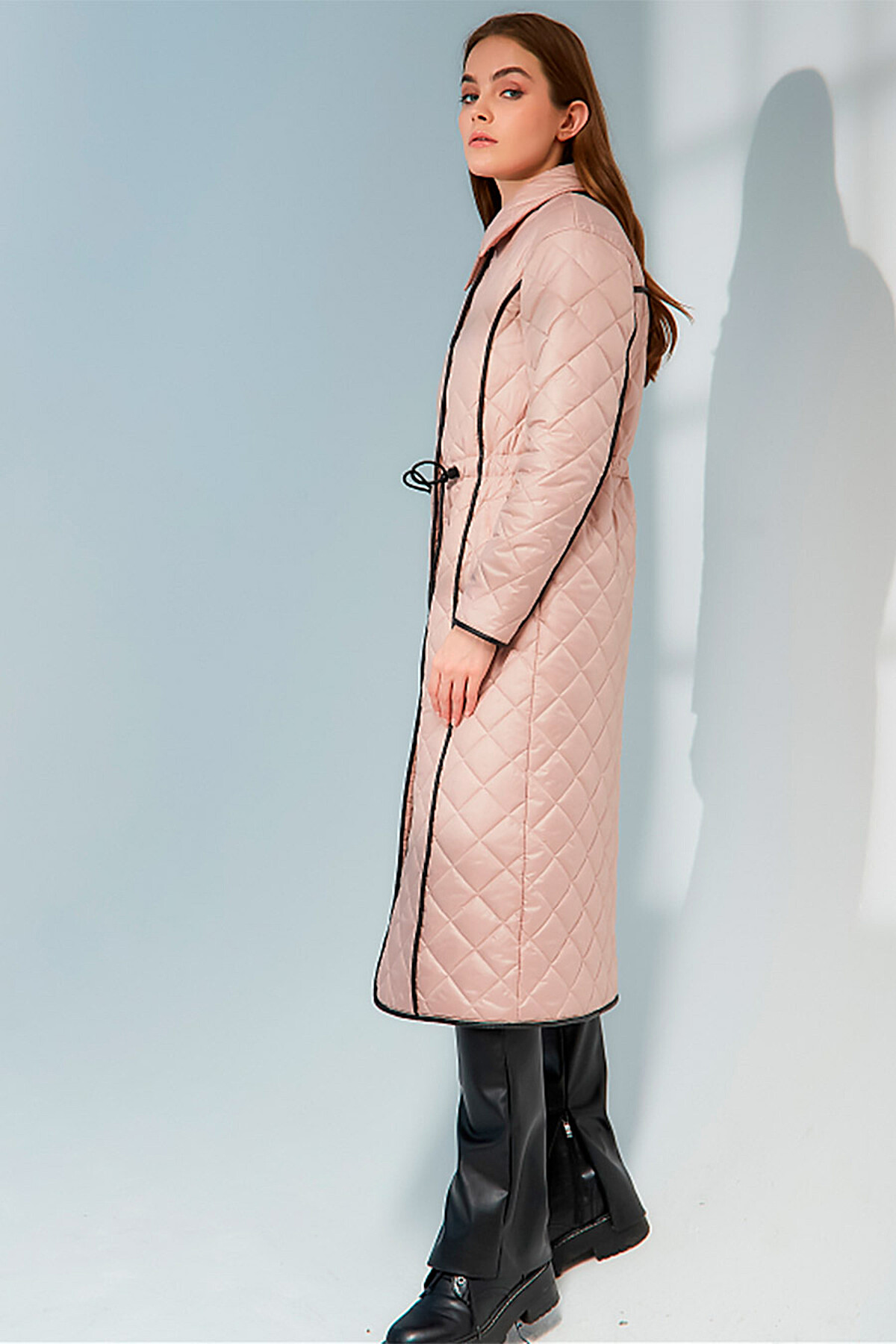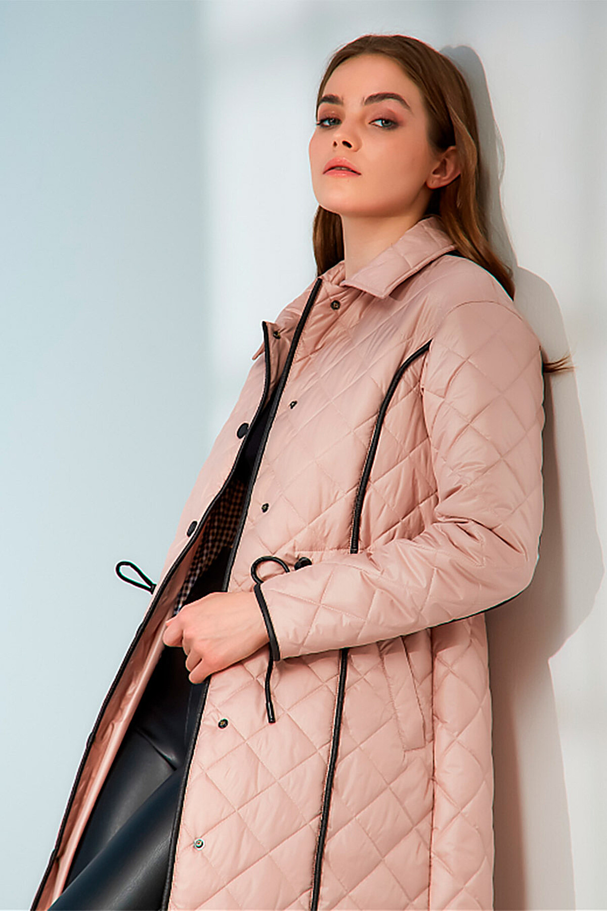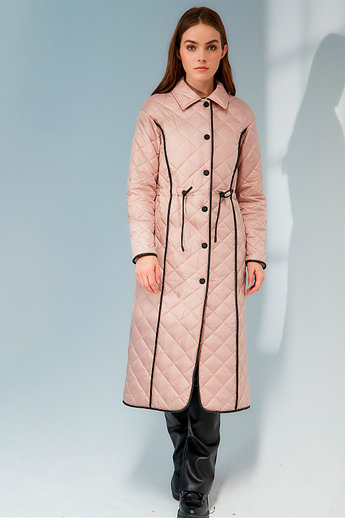 Стильный стеганый однобортный плащ прямого силуэта с кантами и утяжкой на уровне талии. Застежка на кнопках. Кулиска выполнена из эко-кожи. Рукав со спущенным плечом. Имеются два кармана с листочками на кнопках. Есть внутренний карман. Ткань изделия обработана качественной водоотталкивающей пропиткой. Утепление нового поколения ORSOTERM 100 гр., рекомендуемый температурный режим от +10°C до +18°C. Длина изделия: 120 см. Длина рукава: 64 см. Размеры: 42 - 56.