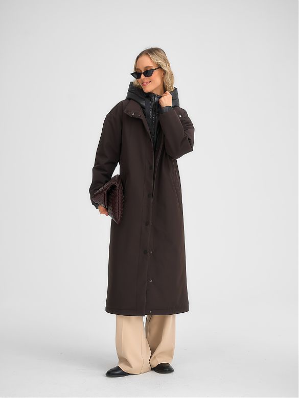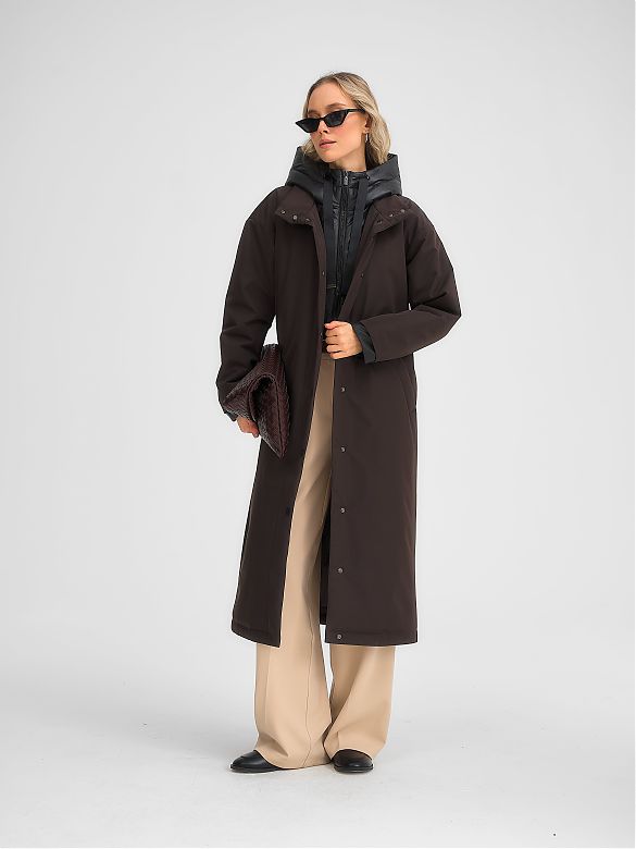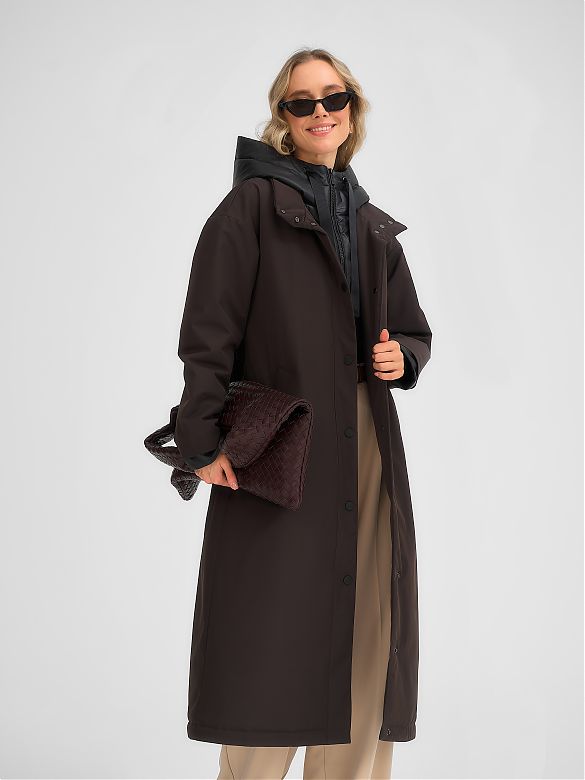 Плащ утепленный коричневый 33267