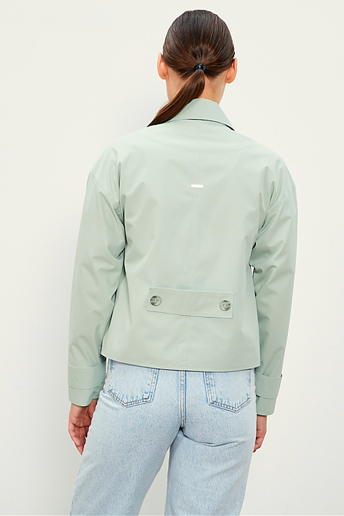 Легкая короткая куртка свободного силуэта с застежкой на молнию и кнопках. Изделие идет с объемным отстежным капюшоном на кнопках. В изделии имеются два настрочных кармана, вход в карман сбоку и сверху, а также есть один внутренний карман. Ткань изделия хлопкосодержащая, обработана качественной водоотталкивающей пропиткой. Изделие без утепления, рекомендуемый температурный режим от +17°C до +23°C. Длина изделия: 65 см. Длина рукава: 64 см. Размеры: 42-56.