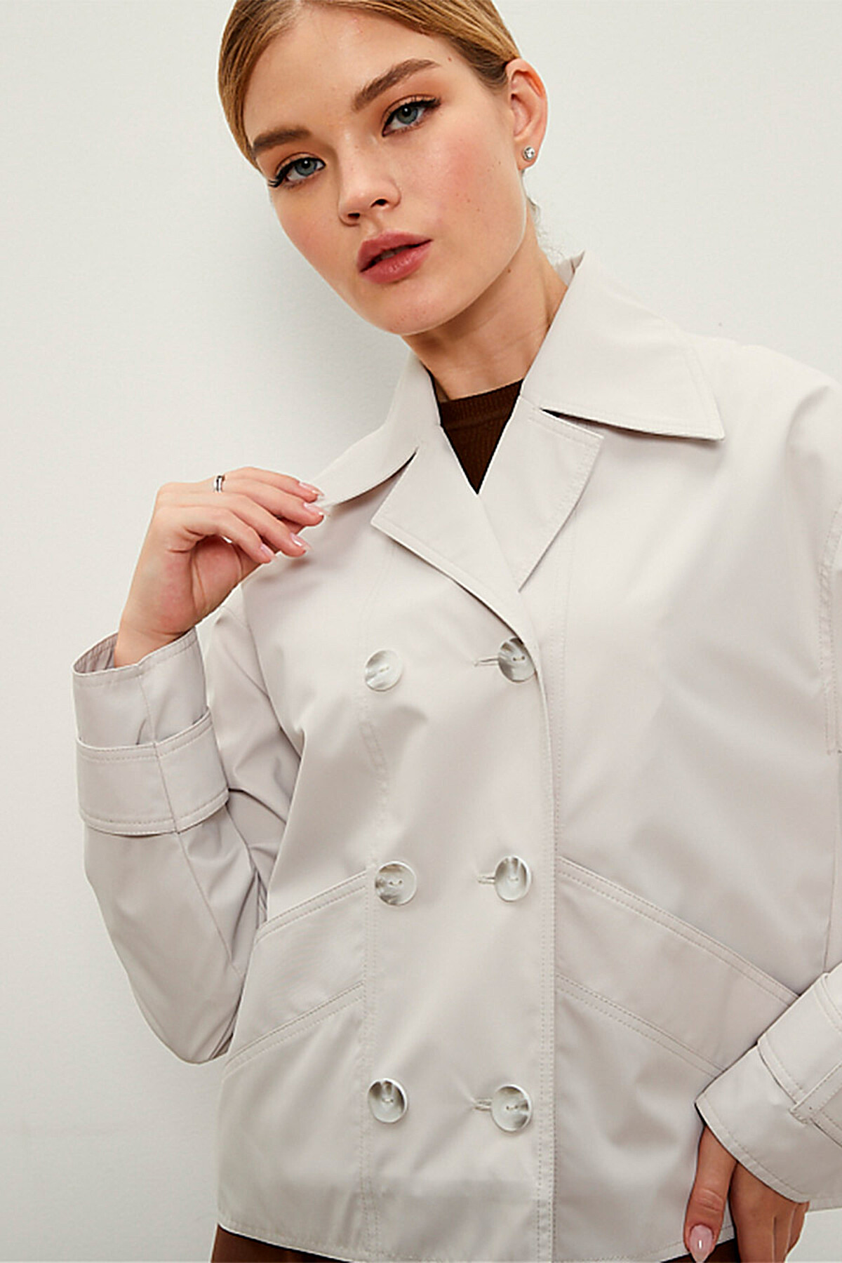 Легкая короткая куртка свободного силуэта с застежкой на молнию и кнопках. Изделие идет с объемным отстежным капюшоном на кнопках. В изделии имеются два настрочных кармана, вход в карман сбоку и сверху, а также есть один внутренний карман. Ткань изделия хлопкосодержащая, обработана качественной водоотталкивающей пропиткой. Изделие без утепления, рекомендуемый температурный режим от +17°C до +23°C. Длина изделия: 65 см. Длина рукава: 64 см. Размеры: 42-56.