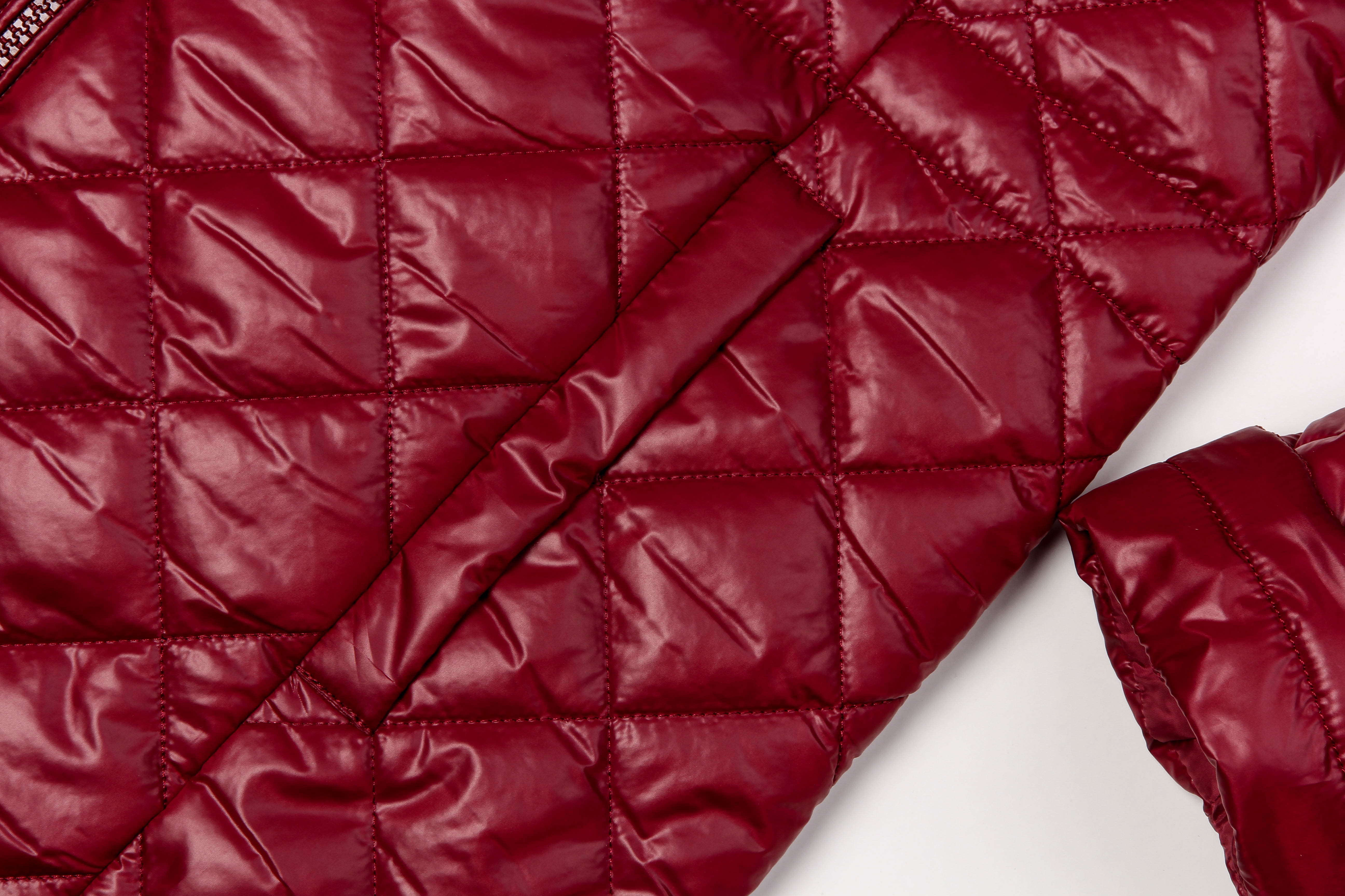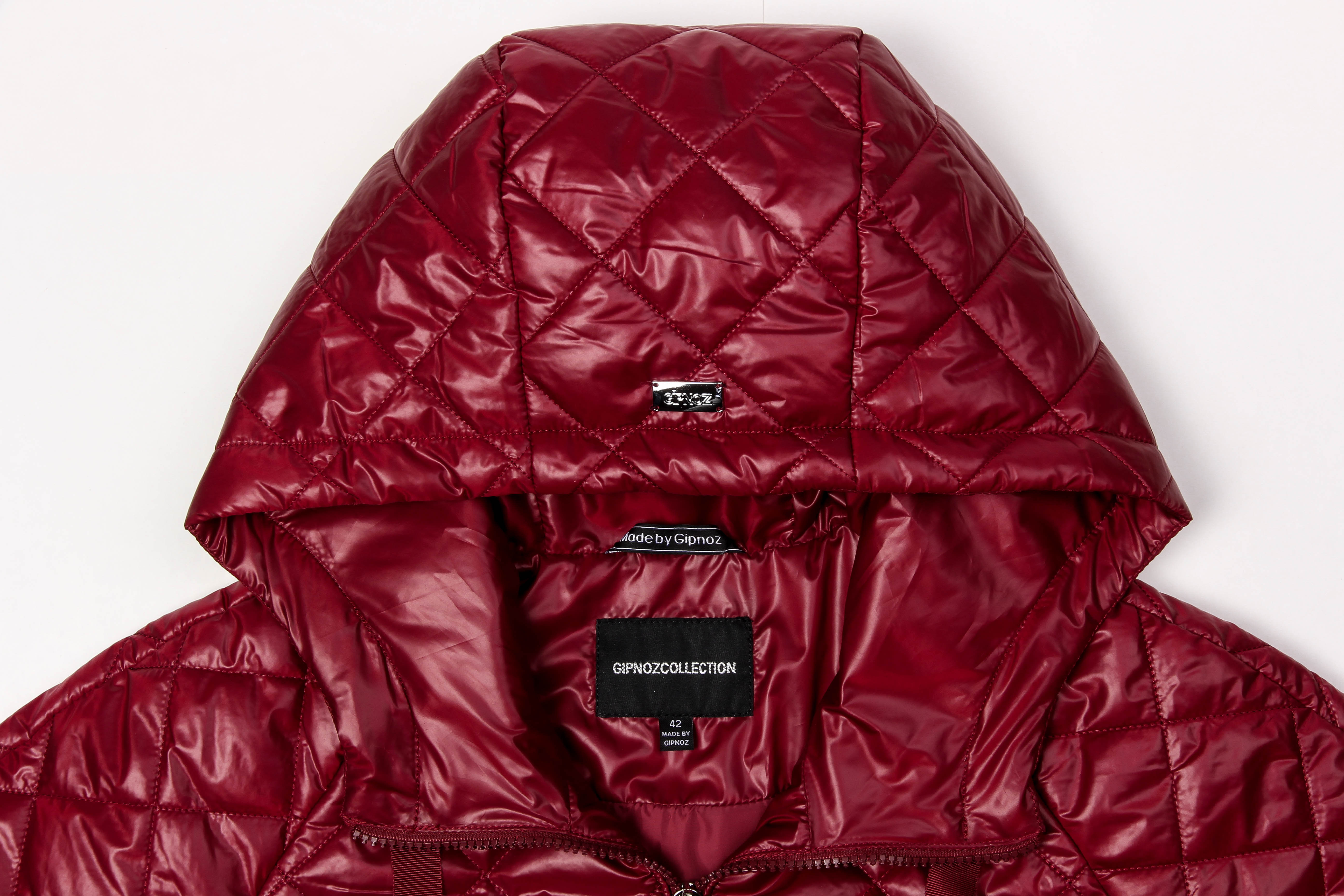 Куртка женская из стеганой ткани прямого силуэта, слегка ниже линии бедер. Куртка не сковывает движений благодаря слегка свободному крою и позволяет чувствовать себя максимально комфортно в прохладную погоду. Сзади куртка немного удлинена. По бокам декоративные округлые разрезы, по талии кулиса на регулируемой резинке. Небольшой капюшон согреет вас в ветреную погоду. По переду карманы с листочкой расположены в рельефах. Застежка на молнию. Утеплитель термофин, плотность 100. винный