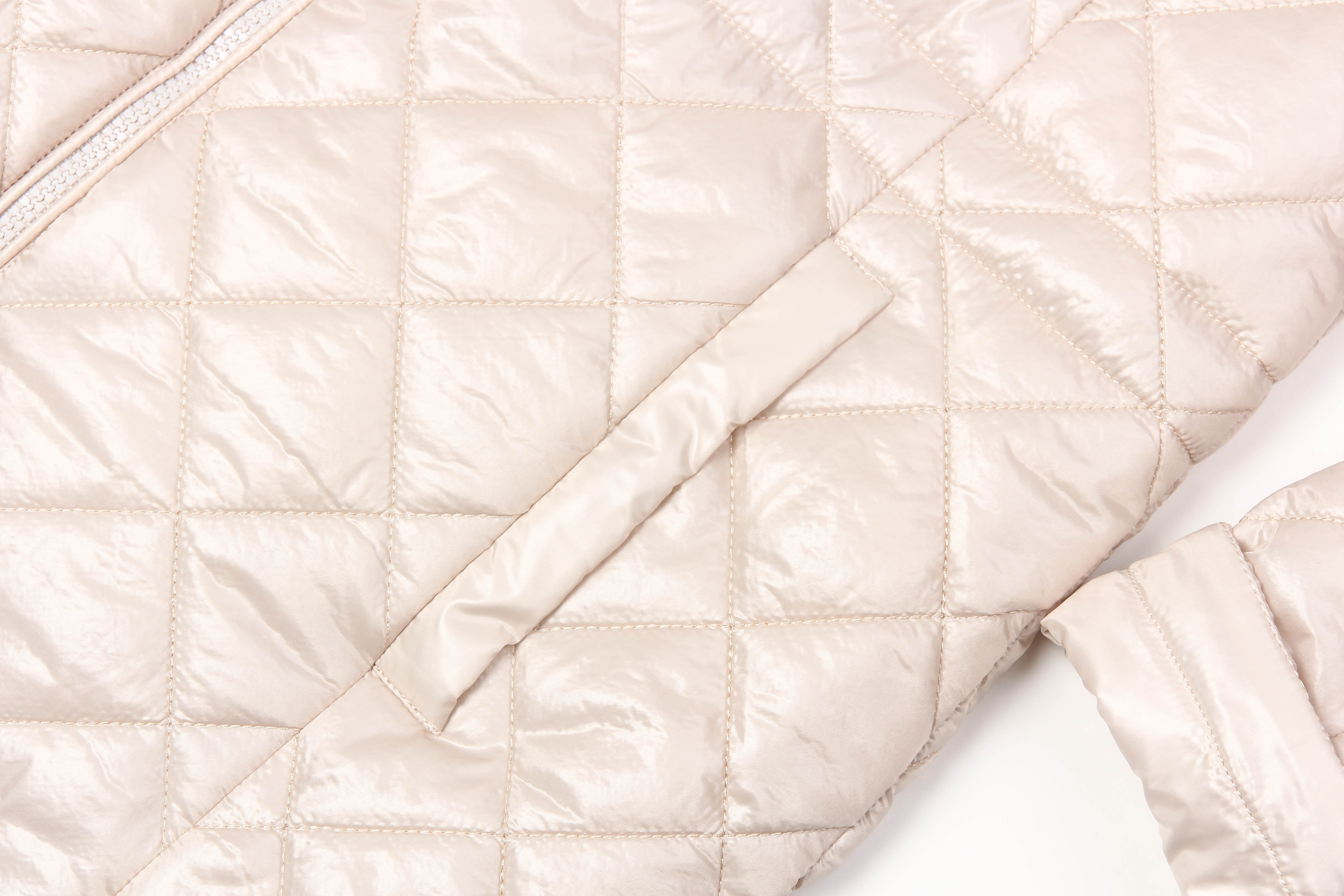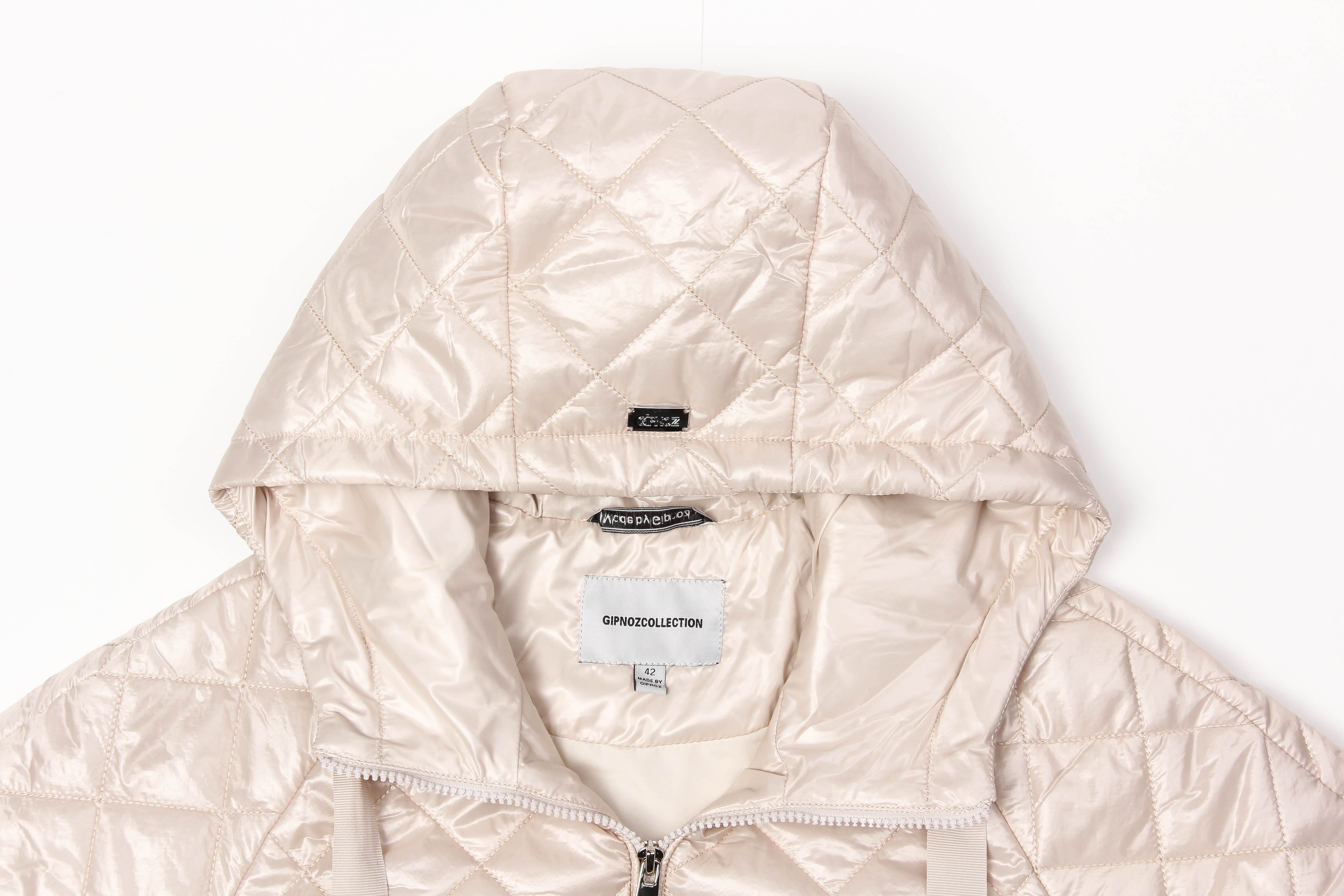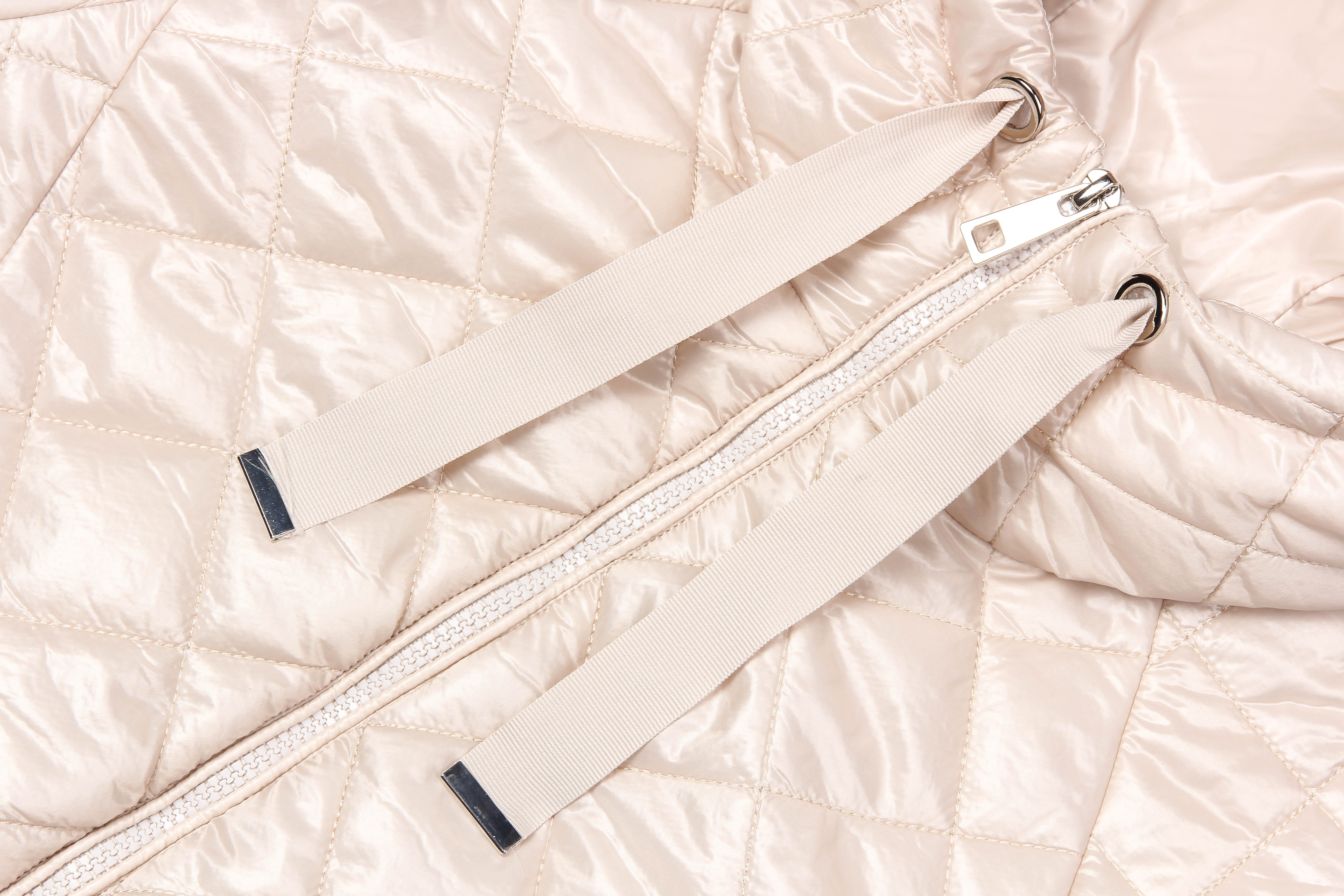 Куртка женская из стеганой ткани прямого силуэта, слегка ниже линии бедер. Куртка не сковывает движений благодаря слегка свободному крою и позволяет чувствовать себя максимально комфортно в прохладную погоду. Сзади куртка немного удлинена. По бокам декоративные округлые разрезы, по талии кулиса на регулируемой резинке. Небольшой капюшон согреет вас в ветреную погоду. По переду карманы с листочкой расположены в рельефах. Застежка на молнию. Утеплитель термофин, плотность 100. жемчужный
