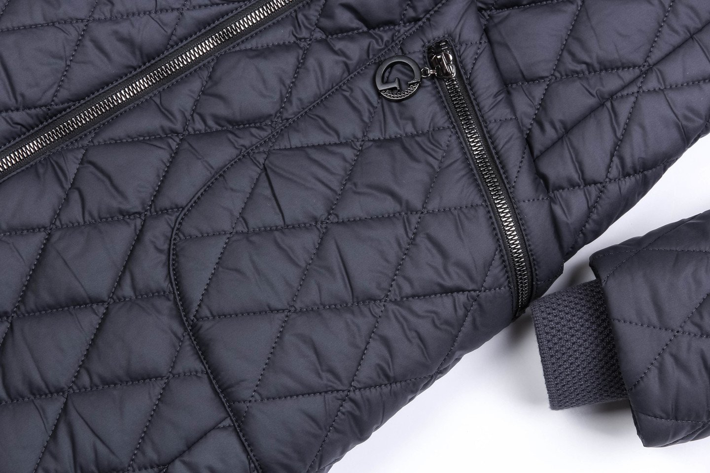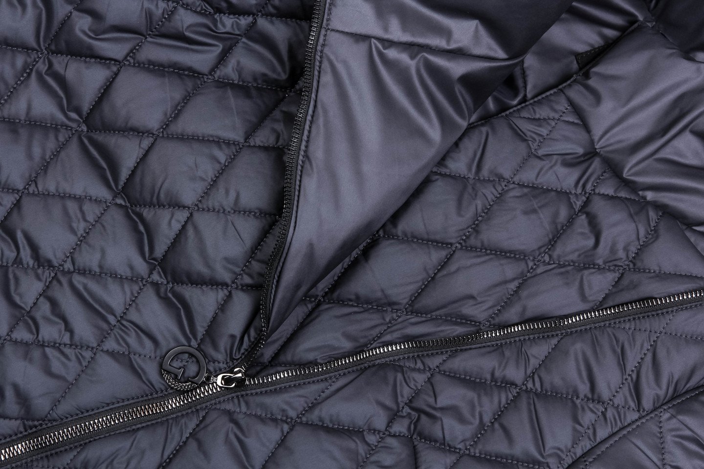 Комфортная и практичная стеганая куртка с капюшоном - идеальное решение для стильного и комфортного образа в прохладную погоду. Куртка прямого силуэта с асимметричной застежкой на «молнию». На переде накладные карманы, украшенные декоративными «молниями» . Линия плеча на естественном месте, низ рукавов с трикотажными манжетами. Удобный капюшон выполнен из ткани компаньона, обеспечивает дополнительную защиту головы и шеи от непогоды. Утеплитель термофин, плотностью 200. черно-синий