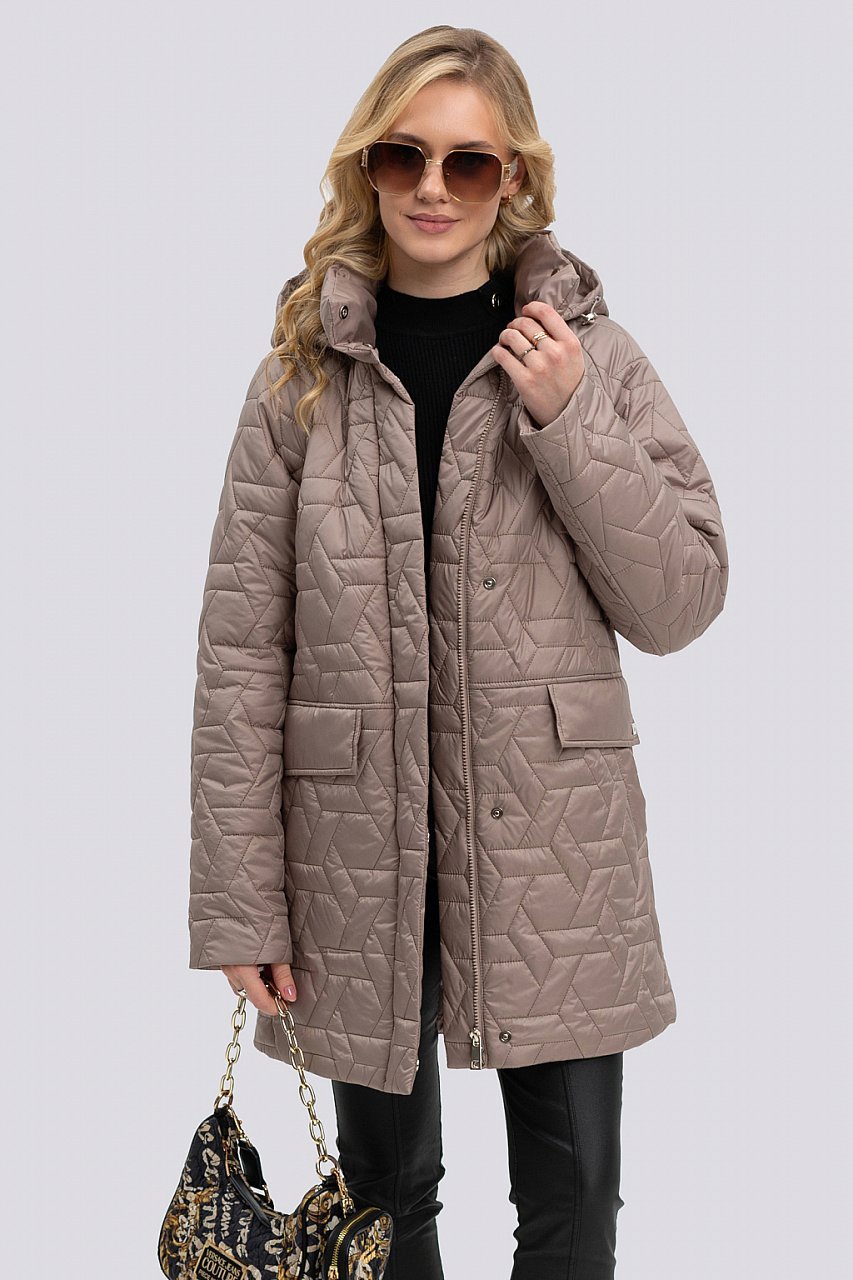 Элегантная женская куртка, выполненная из высококачественного стеганого материала, подарит комфорт и стиль в холодные дни. Благодаря рукаву реглан, она обеспечивает свободу движений, а оригинальные карманы-листочки с декоративным клапаном придают изделию утончённый вид. Застежка молния, прикрытая планкой, не только защищает от ветра, но и добавляет куртке изысканности. На спинке изделия предусмотрены рельефы, которые придают стройность фигуре, а стойка воротника гармонично сочетается с отстегивающимся капюшоном — идеальное решение для переменного осеннего или весеннего сезона. Капюшон, при необходимости, легко снимается, позволяя создать разнообразные образы в зависимости от настроения и стиля. Эта куртка станет незаменимой в гардеробе каждой современной женщины, которая ценит элегантность и функциональность. Благодаря продуманным деталям и качественным материалам, она прекрасно дополнит как повседневный, так и нарядный ансамбль. Обладая утончённым дизайном, который привлекает внимание, эта куртка обещает стать верным спутником в любых приключениях. Утеплитель термофин, плотность 160. латте