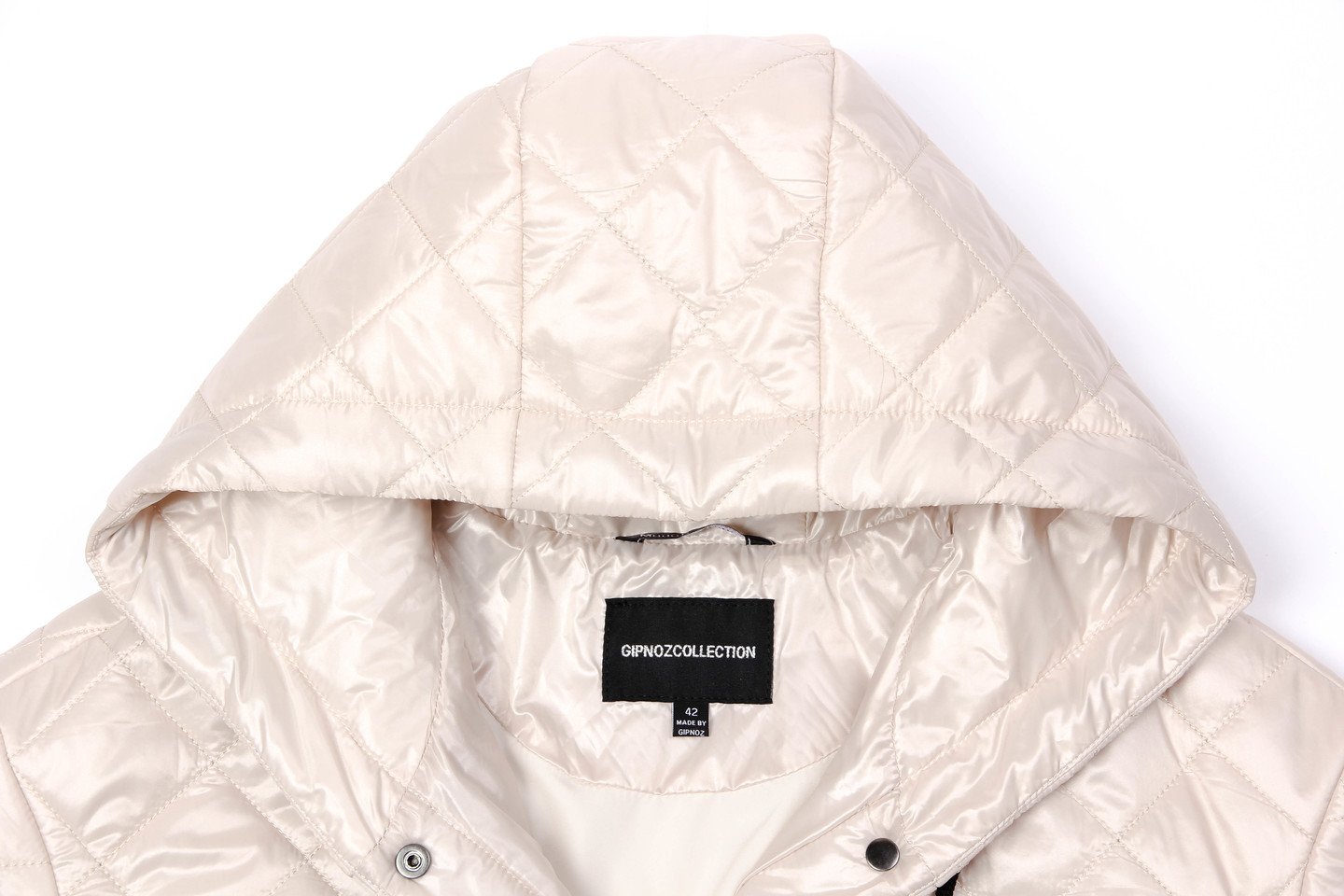 Короткие версии стеганых вещей не только легки и удобны, но и станут идеальной вещью для создания модного образа в теплое межсезонье. Куртка-рубашка – одна из тенденций, которая появилась достаточно недавно, но уже успела зарекомендовать себя с наилучшей стороны. Данный ассортимент одежды является новым форматом и широко используется в жизни современных женщин. Она легко сочетается и с джинсами, и с брюками и со спортивной обувью, т.е отлично вписывается в повседневный гардероб. Капюшон делает куртку более практичной и удобной в использовании, особенно в дождливую погоду. Контрастная фурнитура придает яркость модели. Спущенный покрой рукава идеален для любой фигуры, особенно размеров size+, не стесняет движения и смотрится очень модно. Низ рукава с манжетой, застегивается на кнопку, может отгибаться. Линия низа фигурная. Утеплитель термофин, плотность 100. жемчужный