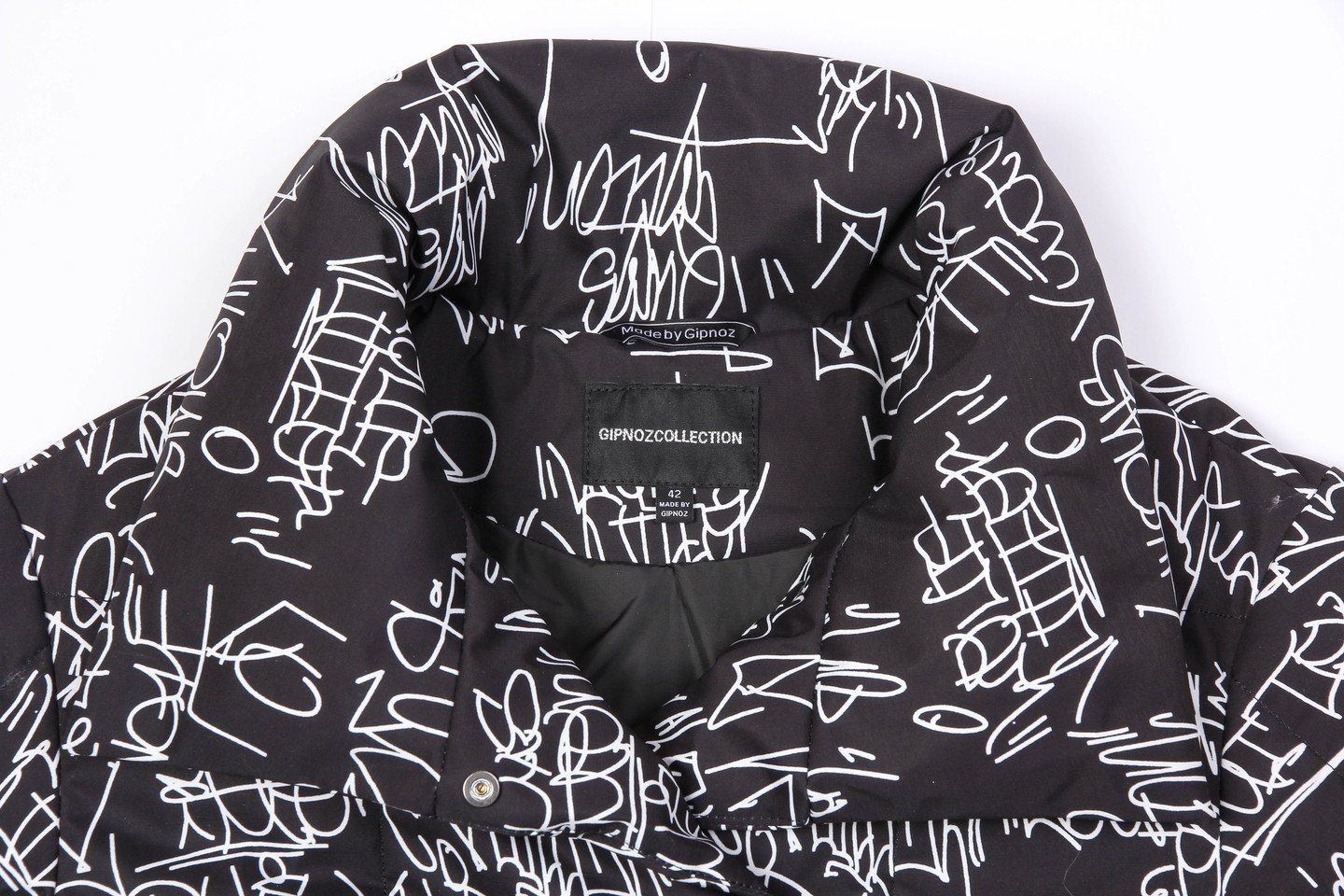 отвечают за микроклимат, что очень актуально в холодную погоду. В рукавах предусмотрены эластичные манжеты. Застежка на потайные кнопки. Утеплитель синтепух, синтетический пух, плотность 150. Температурный режим до -5. черно-белый