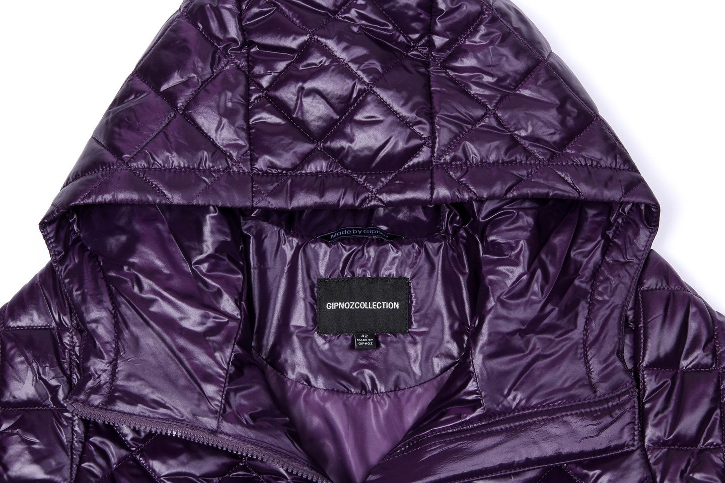 Стеганая верхняя одежда уже не первый раз становится модной тенденцией. Элегантность, строгость линий, ничего лишнего - это наша новая куртка из строченой ткани с модным поясом с фирменной пряжкой. В ней вы не останетесь не замеченной на городских улицах. Куртка прямого силуэта, втачной рукав, капюшон не отстегивается, карманы в швах рельефа, застежка на молнию. Утеплитель термофин, плотность 100. баклажан