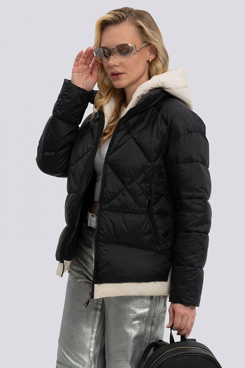 Наступление осени диктует свои правила в гардеробе, и легкая куртка становится незаменимым элементом для создания стильного и комфортного образа. Представляем вашему вниманию модель, сочетающую в себе практичность и современные тенденции. Изделие свободного объема, спущенная линия плеча, застегивается на молнию. Карманы на молнии надежно сохранят ваши ценные вещи. Кулиска по низу куртки позволяет регулировать объем и защищает от проникновения холодного воздуха. Воротник стойка, капюшон не отстегивается. Сочетание разной стежки в модели и контрастного цвета капюшон создают оригинальный дизайн модели. Разнообразная цветовая гамма позволит вам подобрать идеальный вариант, соответствующий вашему индивидуальному стилю и предпочтениям. Утеплитель – синтетический пух. Температурный режим от 0 до -10. черный