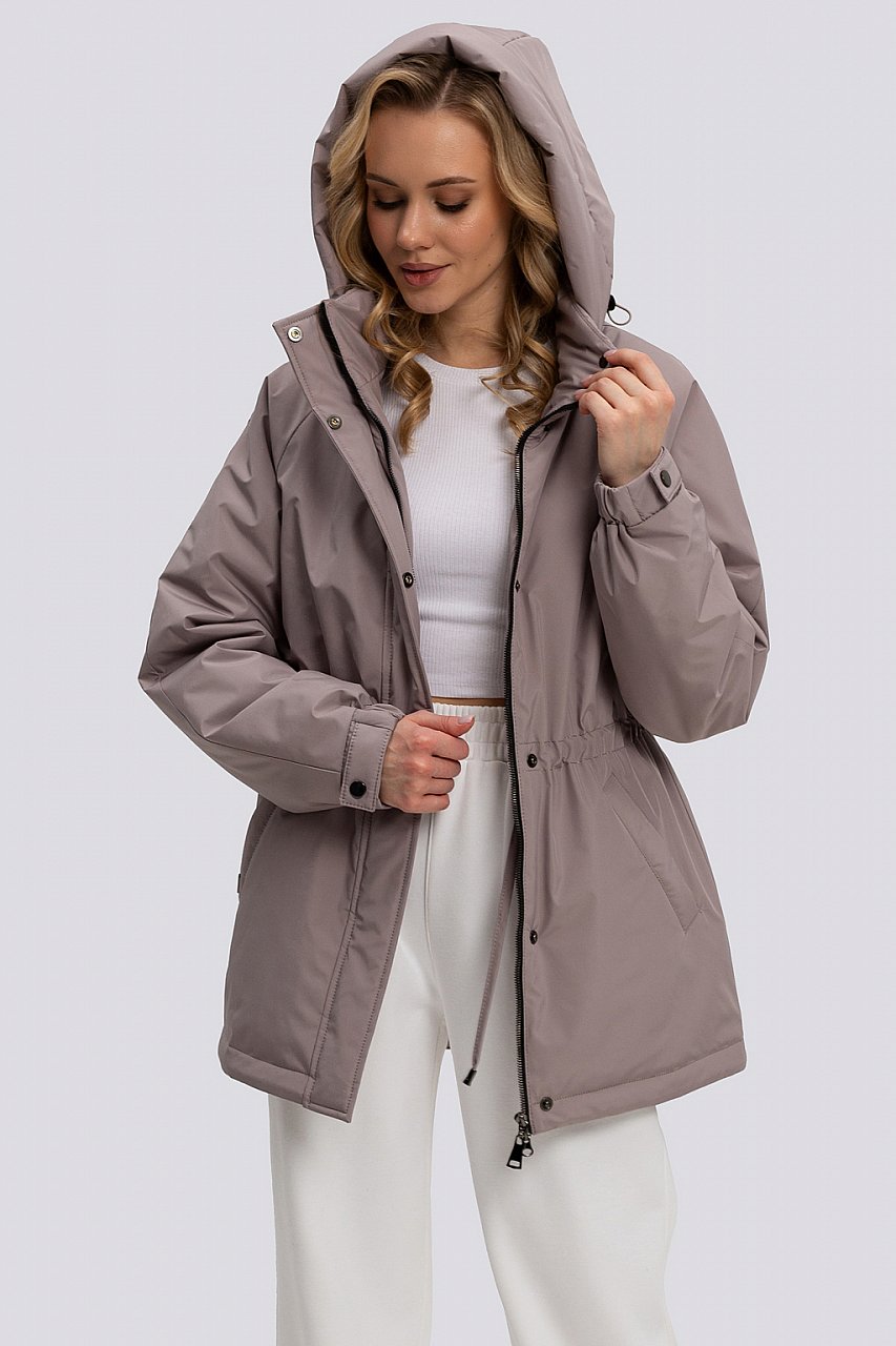 Легкая куртка с кулисой по талии - главный тренд в сезоне весна 2026, она становится символом уверенного городского стиля. Лаконичная, собранная, лишённая излишнего декора, она будто отражает ритм мегаполиса - быстрый, но осознанный. Прямой крой, чёткие линии, функциональные карманы и кулиска выглядят как часть продуманного дизайна. Объем по талии регулируется со стороны подкладки изделия. Покрой рукава реглан, умеренный объем изделия обеспечивают комфорт и удобство в носке. По линии низа рукава манжет с резинкой. Капюшон надежно защитит от дождя и ветра, при желании отстегивается. Основная ткань без блеска, что позволяет изделию выглядеть скромно, но подходить к любому гардеробу. Цветовая гамма удовлетворит вкус каждой модницы. Утеплитель термофин, плотность 100. Температурный режим на плюсовую температуру до -1. латте