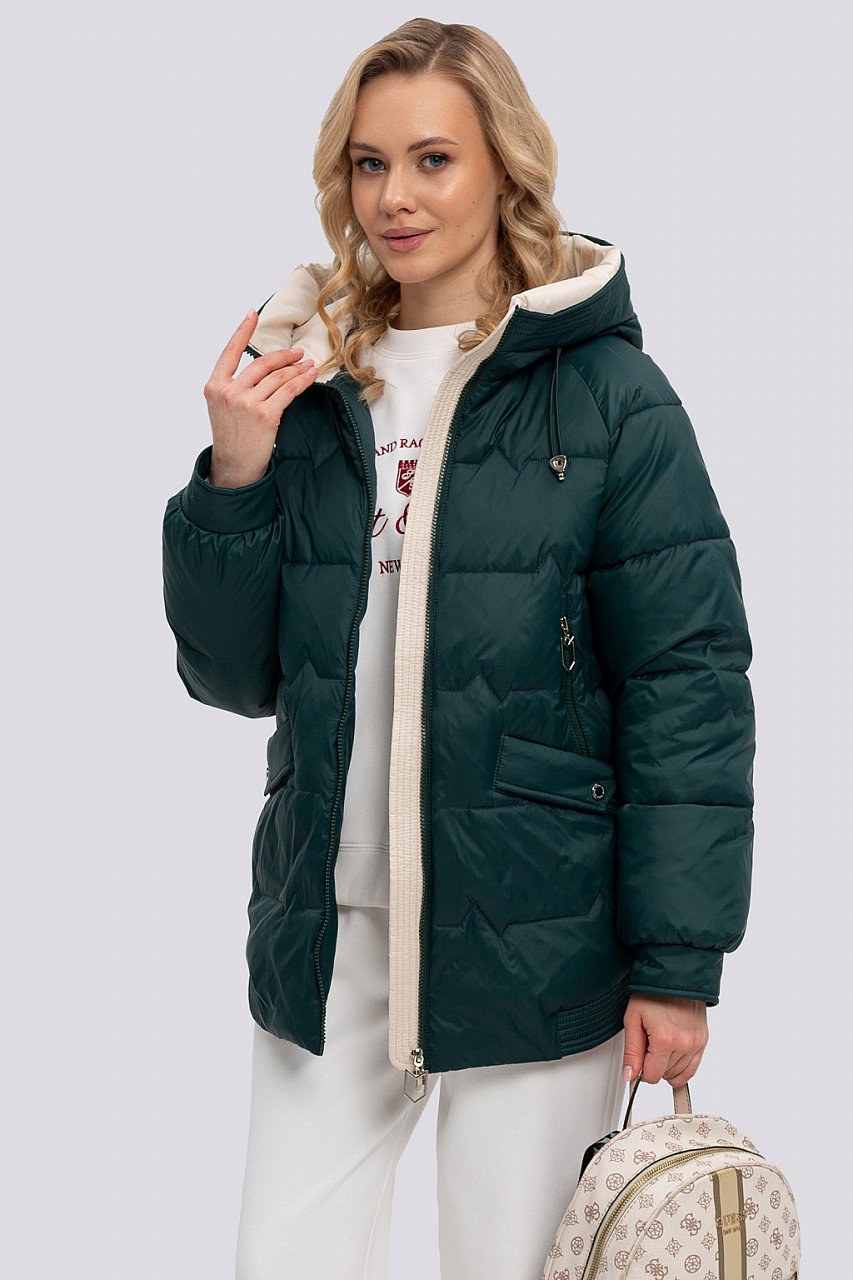Легкая куртка станет отличным дополнением вашего гардероба в демисезонный период. Модель выполнена в умеренном объеме, покрой рукава – реглан, что обеспечивает максимальный комфорт и свободу движений. Силуэт изделия прямой, но фигурная линия низа создает легкий «О» силуэт. На изделии 4 кармана – это очень практично, вход в карман застегивается. Капюшон с кулисой защитит от дождя и ветра. Застежка молния, снизу – ветровой клапан. В модели используется ткань – компаньон и подкладка контрастного цвета, что смотрится очень оригинально, освежает изделие. Новый вид стежки придает привлекательный внешний вид. Утеплитель синтепух, дополнительно на подкладке изделия термофин, плотность 60 Температурный режим до -12. виридиан