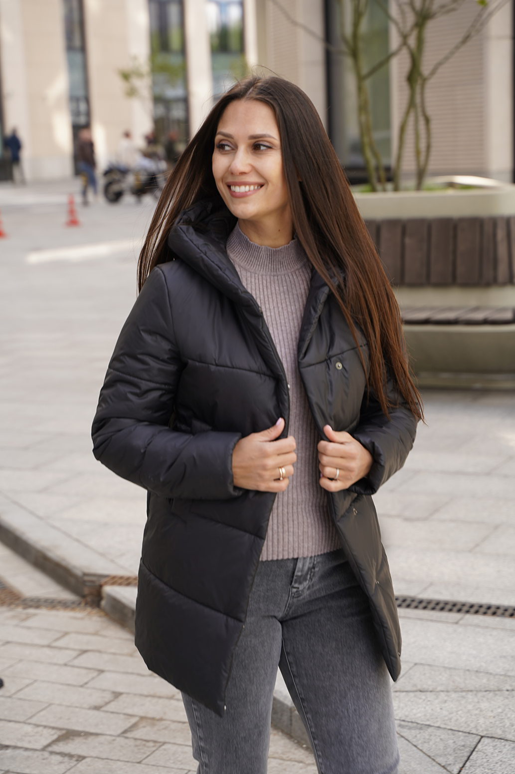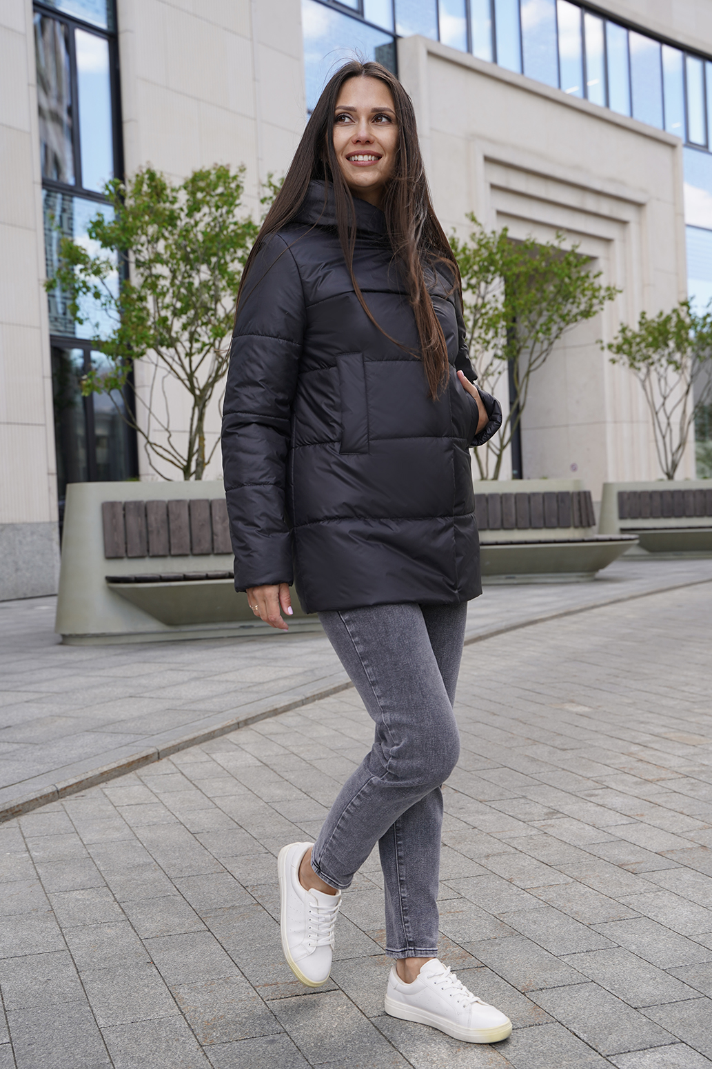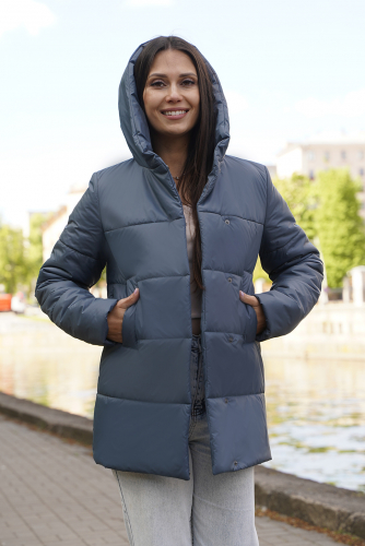 Лаконичная  демисезонная куртка воплощает в себе элегантность и практичность. Ее силуэт, акцентированный застежкой на кнопки, придает образу непринужденную легкость, а шалевый капюшон, ниспадающий мягкими складками, окутывает теплом и уютом в прохладные осенние дни. Карманы, расположенные на линии груди, не только добавляют функциональности, но и служат стильным акцентом, подчеркивающим женственность фигуры.  Эта куртка станет незаменимой вещью в гардеробе современной женщины, ценящей стиль и комфорт. Она легко сочетается с различными элементами одежды, позволяя создавать разнообразные образы – от повседневных до элегантных.