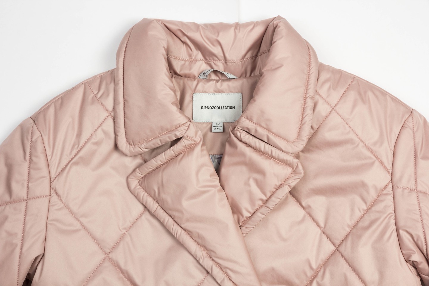 Весна – отличное время, чтобы подобрать новые варианты верхней одежды в более облегченном варианте. Укороченное пальто свободного объема с крупной стежкой «ромб» - отличный вариант для весеннего аутфита. Рукав рубашечный со спущенным плечом, длина рукава регулируется. На переде карманы с листочками. Пальто двубортное , с лацканами. Застежка на пуговицы. По краю лацканов, бортов, низа рукавов и листочек широкая декоративная строчка. Есть пояс. Утеплитель термофин, плотность 100. бежевый крем
