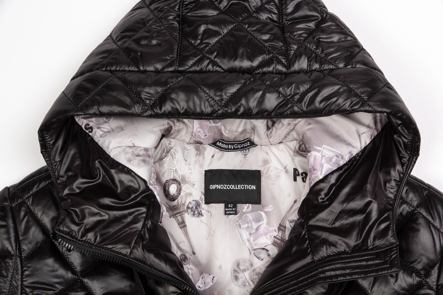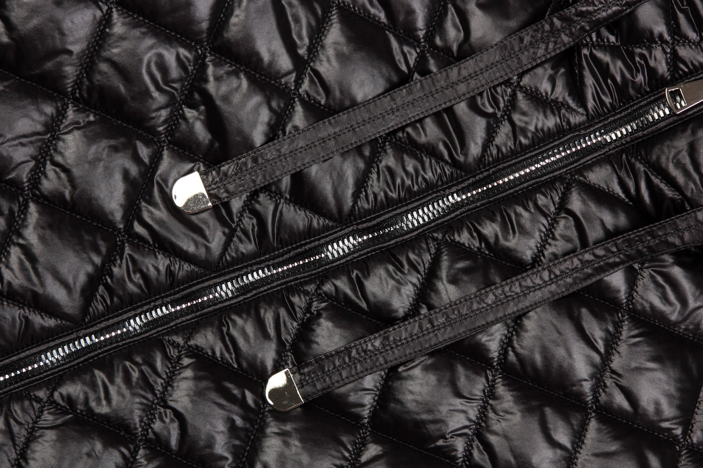 Стеганое пальто в спортивном стиле прекрасно подойдет на осень. В этом пальто можно быть уверенной, что в нем будет не холодно осенними днями. Украшением изделия служит металлическая фурнитура и разрезы на молниях по боковым швам. Удобный капюшон защитит от дождя и ветра. Центральная застежка на молнию. Утеплитель термофин, плотность 200. черный