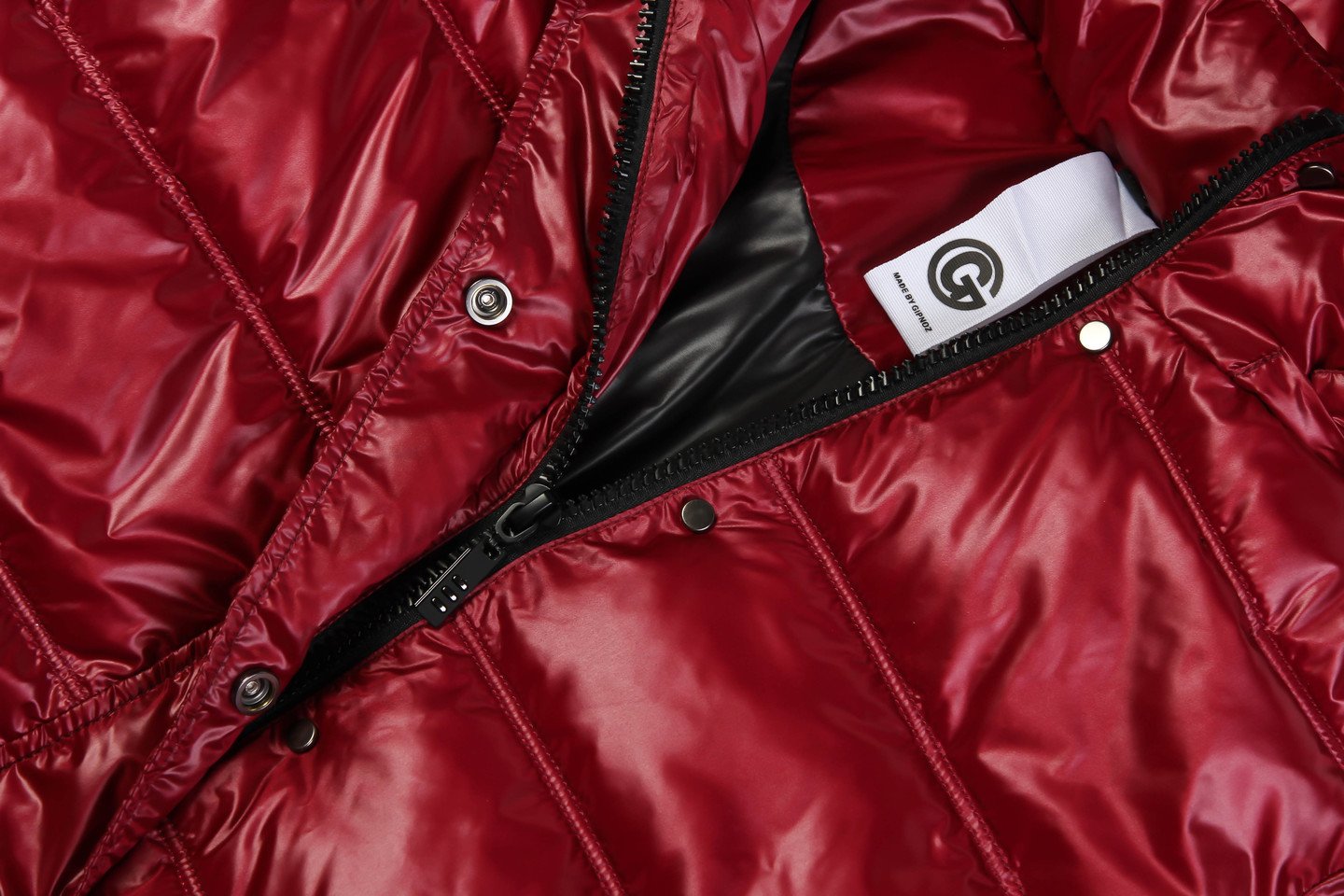 Силуэт изделия прямой, втачной рукав слегка спущенное плечо, отстегивающийся капюшон, карманы листочки, по переду застежка на молнию с планкой. Утеплитель синтепух, температурный режим до -10. винный