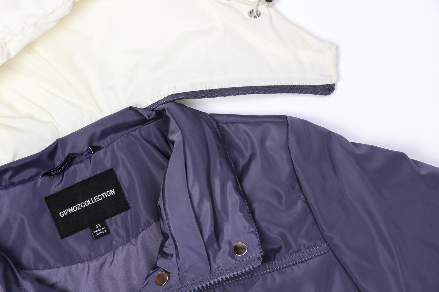Легкое пальто из плащевой ткани — отличный вариант на межсезонье, плотная ткань защитит от ветра и дождя. Изделие прямого силуэта, объем изделия свободный. Отличительная особенность — отстегивающийся капюшон цвета слоновой кости прекрасно смотрится около лица. Накладные карманы уже несколько сезонов очень популярны — также присутствуют в нашей модели. По линии низа спинка длиннее переда. Утеплитель термофин, плотность 100. ежевика