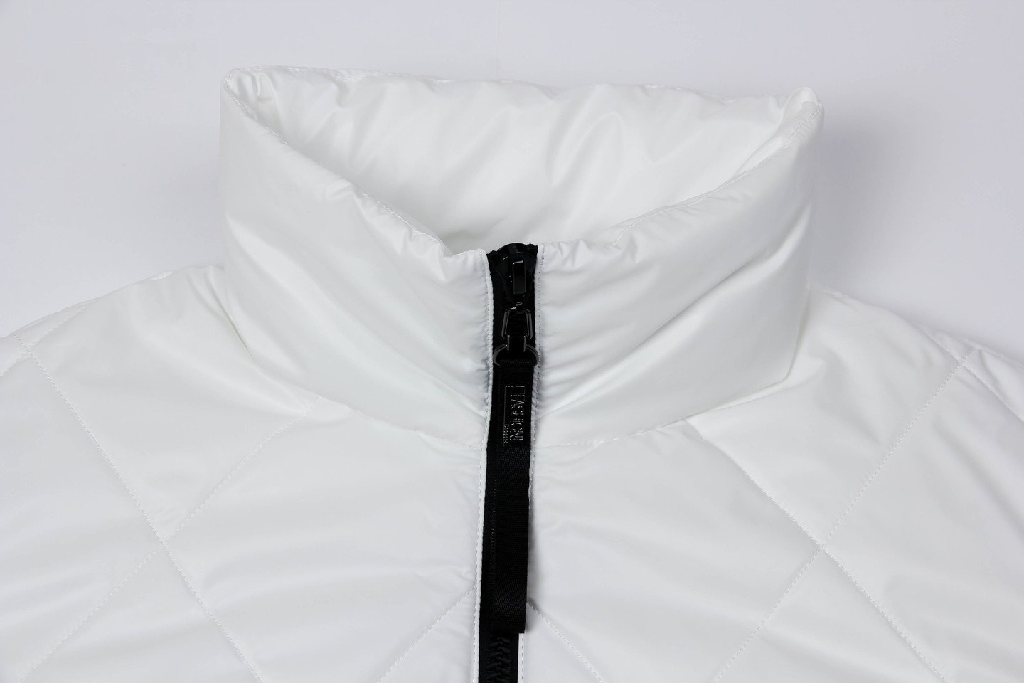 В настоящее время одежда ценится за универсальность и удобство, комфортность в носке и возможность составлять разные образы. Удлиненное пальто из плащевой ткани – отличный вариант на межсезонье - не промокает, не продуваемое. Наша модель достаточно простая: покрой рукава со спущенной линией плеча, свободный объем изделия, прямой силуэт, воротник стойка. Низ рукава собран на манжет с резинкой. Основной дизайн – применение контрастной фурнитуры, что выделяет модель среди остальных. Пальто застегивается на молнию и отлично подойдет для любого типа фигуры. По боковым швам – шлицы, которые можно расстегнуть для удобства движения. Модный прием предстоящего сезона – стежка ткани в крупный ромб, а также новая цветовая палитра, которая не позволят остаться равнодушными! Утеплитель термофин, плотность 150. белый