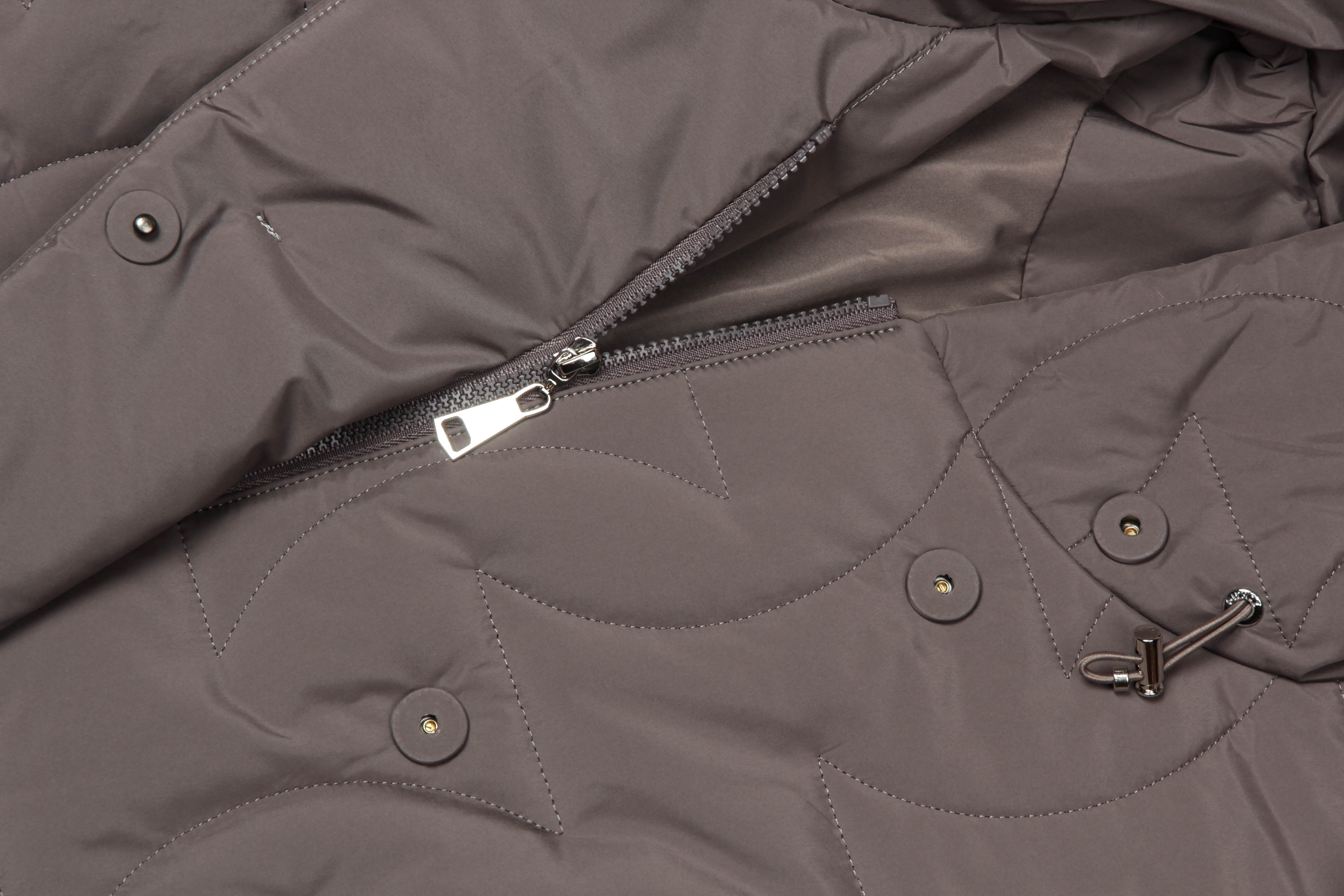 В этом году, как и в предыдущих, не теряют свою актуальность стеганые пальто. Изделие из данной ткани более практичное и удобное в использовании. Пальто в классическом стиле, полуприлегающего силуэта. Умеренный объем изделия идеально подходит для создания уютного образа, который при этом будет выглядеть стильно и элегантно. Втачной покрой рукава идеален для любой фигуры, придает стройность и строгость образу. Капюшон – очень удобная и актуальная деталь верхней одежды, защитит от ветра и холода. Рукав отгибается на манжет. Модель отлично смотрится с поясом и без. Пальто застегивается на кнопки и внутреннюю молнию. Новый вид стежки несомненно приковывает взгляды окружающих. Нам удалось продлить сезон носки изделия, за счет внедрения в производство нового вида стеганой ткани. Ткань верха плотная и многослойная. Утеплитель термофин, плотность 200. Температурный режим до -10. серо-коричневый