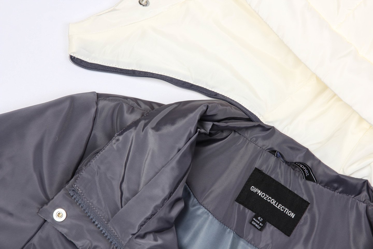 Легкое пальто из плащевой ткани — отличный вариант на межсезонье, плотная ткань защитит от ветра и дождя. Изделие прямого силуэта, объем изделия свободный. Отличительная особенность — отстегивающийся капюшон цвета слоновой кости прекрасно смотрится около лица. Накладные карманы уже несколько сезонов очень популярны — также присутствуют в нашей модели. По линии низа спинка длиннее переда. Утеплитель термофин, плотность 100. графит
