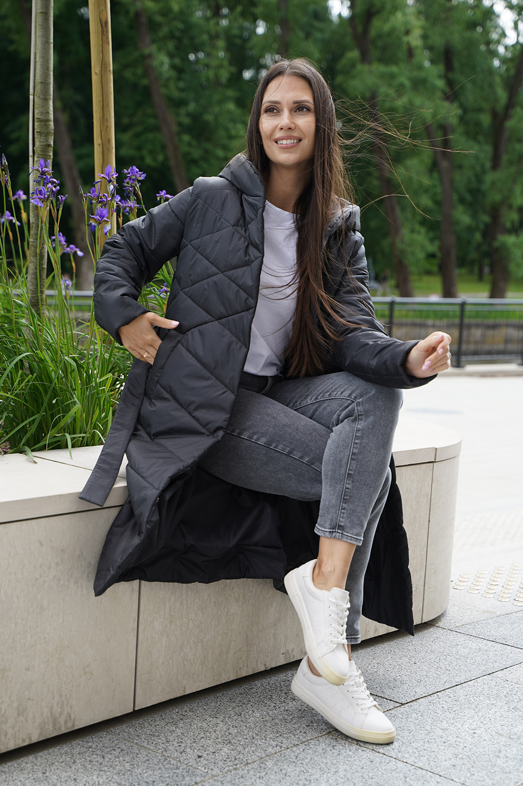 Женское демисезонное пальто на синтепоне, созданное для элегантных и комфортных образов. Двубортный крой придает ему классический вид, а шалевый капюшон — ощущение уюта и стиля в прохладную погоду. Оригинальная стежка добавляет пальто уникальности и изысканности, подчеркивая его авторский дизайн. Пояс, заправленный в шлевки, позволяет подчеркнуть талию и создать женственный силуэт, а карманы-листочки — практичные и приятные детали. Это пальто — гармоничное сочетание стиля и функциональности, которое подойдет любой женщине, желающей выглядеть тактически и при этом чувствовать себя комфортно.