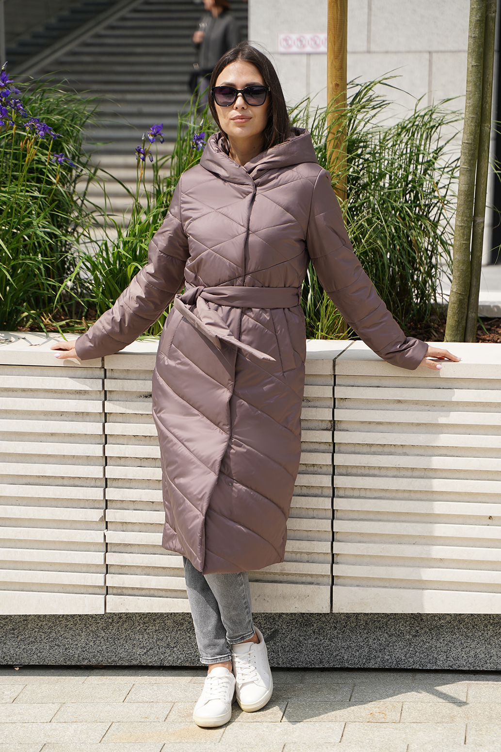 Женское демисезонное пальто на синтепоне, созданное для элегантных и комфортных образов. Двубортный крой придает ему классический вид, а шалевый капюшон — ощущение уюта и стиля в прохладную погоду. Оригинальная стежка добавляет пальто уникальности и изысканности, подчеркивая его авторский дизайн. Пояс, заправленный в шлевки, позволяет подчеркнуть талию и создать женственный силуэт, а карманы-листочки — практичные и приятные детали. Это пальто — гармоничное сочетание стиля и функциональности, которое подойдет любой женщине, желающей выглядеть тактически и при этом чувствовать себя комфортно.