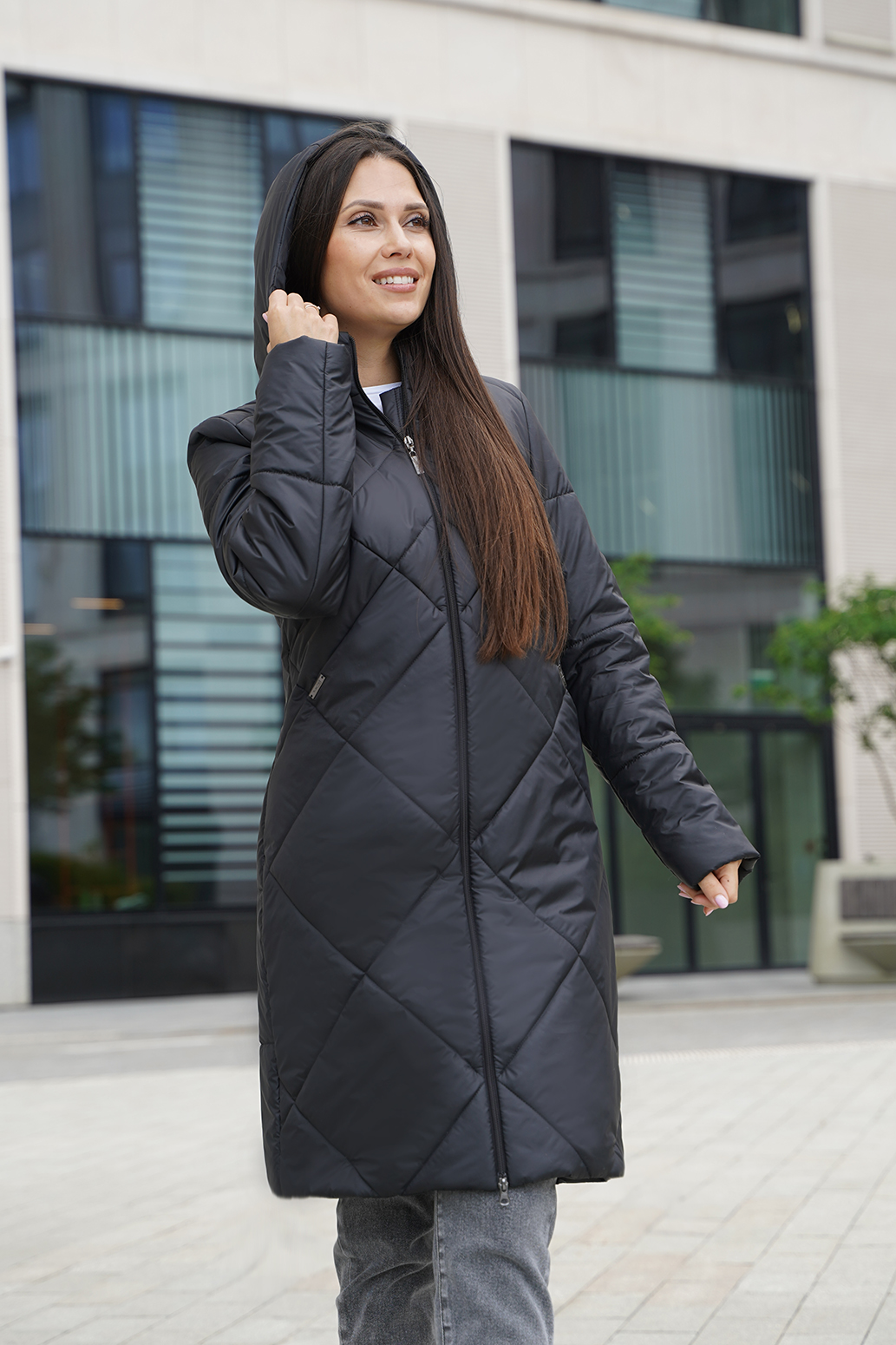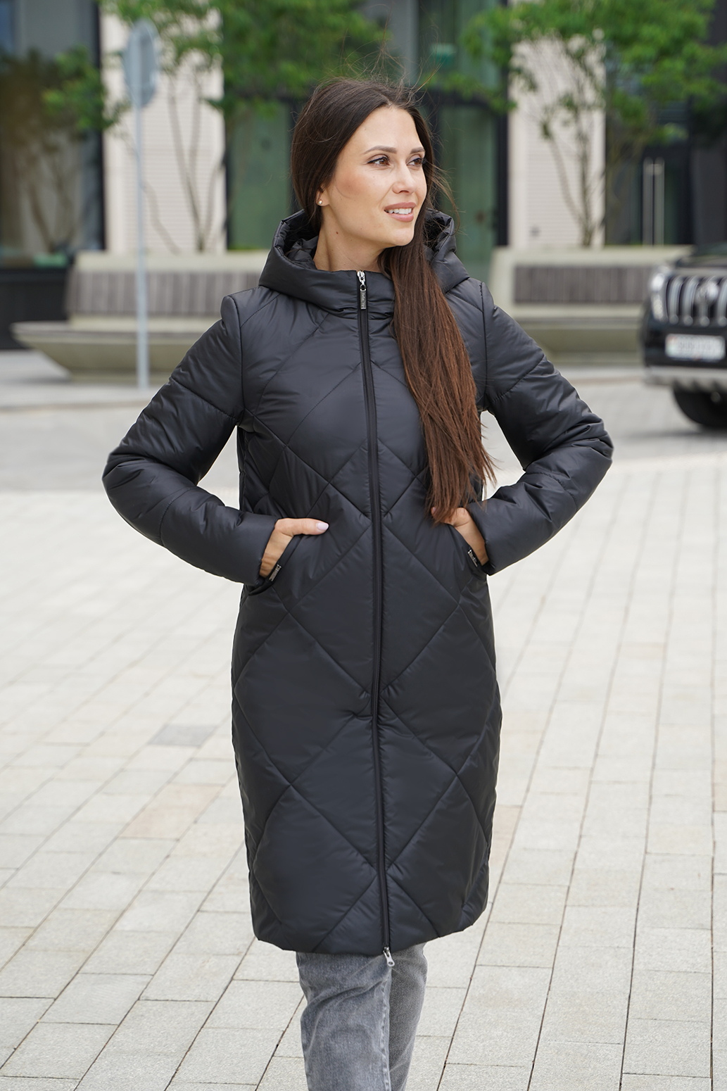 Стеганое пальто на синтепоне, выполненное с оригинальной стежкой, которая придает изделию особую текстуру и изысканный вид. Карманы спрятаны в швах, создавая гладкий и аккуратный силуэт. Видовая витая молния служит стильным акцентом и легко открывается и закрывается, добавляя изделию современный штрих. Капюшон с цельнокроенной стойкой отлично защищает от ветра и дождя. Такое пальто идеально сочетает в себе уют, функциональность и оригинальность.