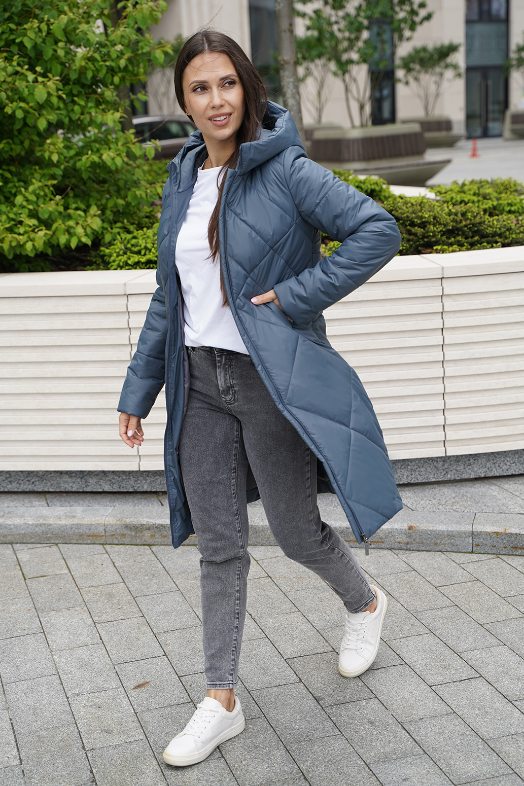 Стеганое пальто на синтепоне, выполненное с оригинальной стежкой, которая придает изделию особую текстуру и изысканный вид. Карманы спрятаны в швах, создавая гладкий и аккуратный силуэт. Видовая витая молния служит стильным акцентом и легко открывается и закрывается, добавляя изделию современный штрих. Капюшон с цельнокроенной стойкой отлично защищает от ветра и дождя. Такое пальто идеально сочетает в себе уют, функциональность и оригинальность.