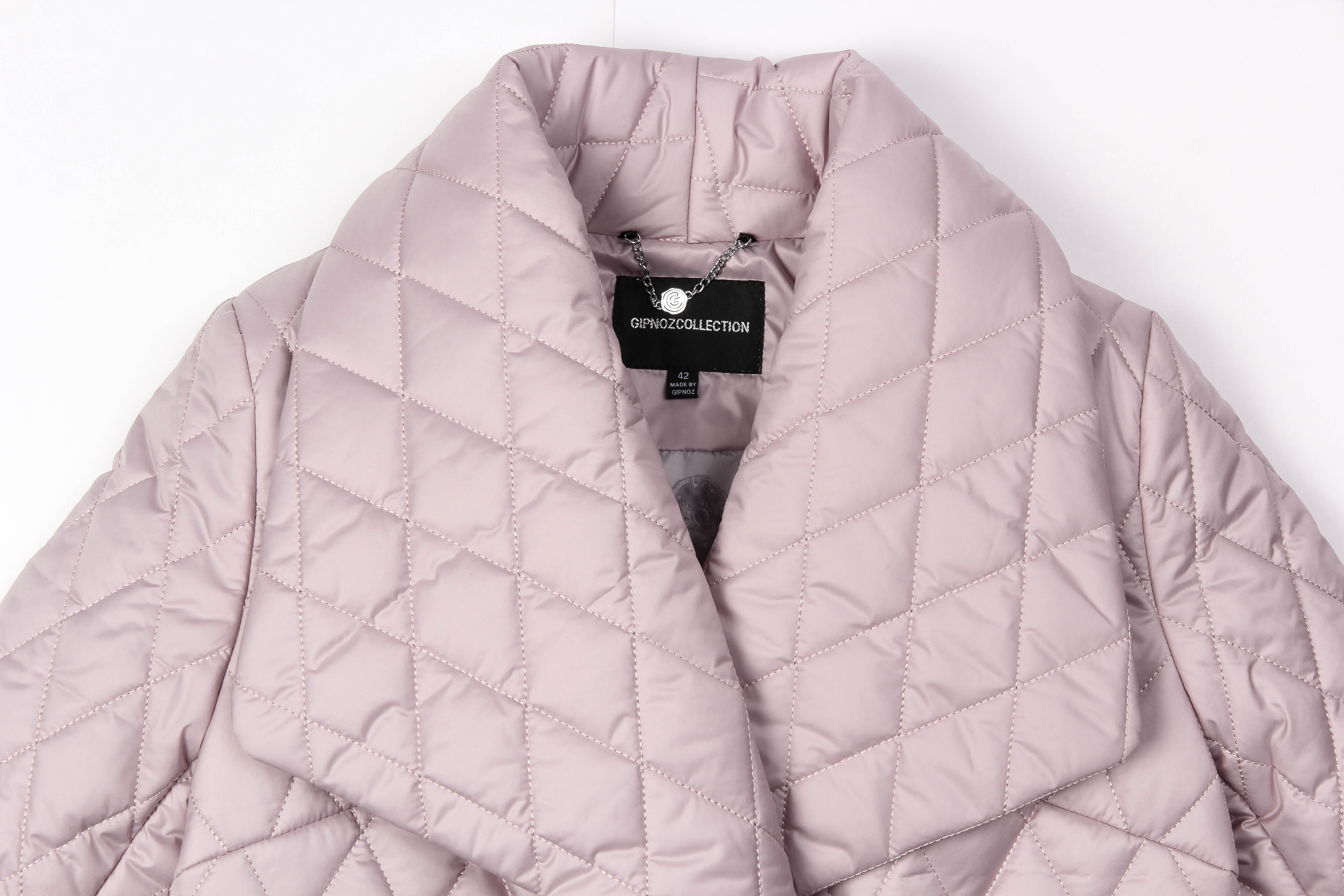 Эффектное и модное пальто в стеганом варианте, который создает «узор» в виде ромбиков, выглядит очень уютно и стильно. С таким пальто Вы сможете исполнить практичные и комфортные луки в стиле спорт-шик и стрит-стайл, особенно актуальные для повседневных выходов. Стеганые пальто можно с легкостью совместить, как с грубыми ботинками на плоском ходу, так и с сапогами на каблуке. Важно помнить, что с таким пальто Вам не страшны холод и непогода. Изделие прямого силуэта, с поясом, покрой рукава – втачной. Воротник «Апаш», сильно распахнутый и прямоугольный, с широкими открытыми лацканами. Эффектные отложные воротники вошли в списки модных акцентов еще в прошлом году, а в сезоне 2022 этот тренд приобретает новый размах! Застежка – потайные кнопки. Утеплитель термофин, плотность 100. светло-лиловый