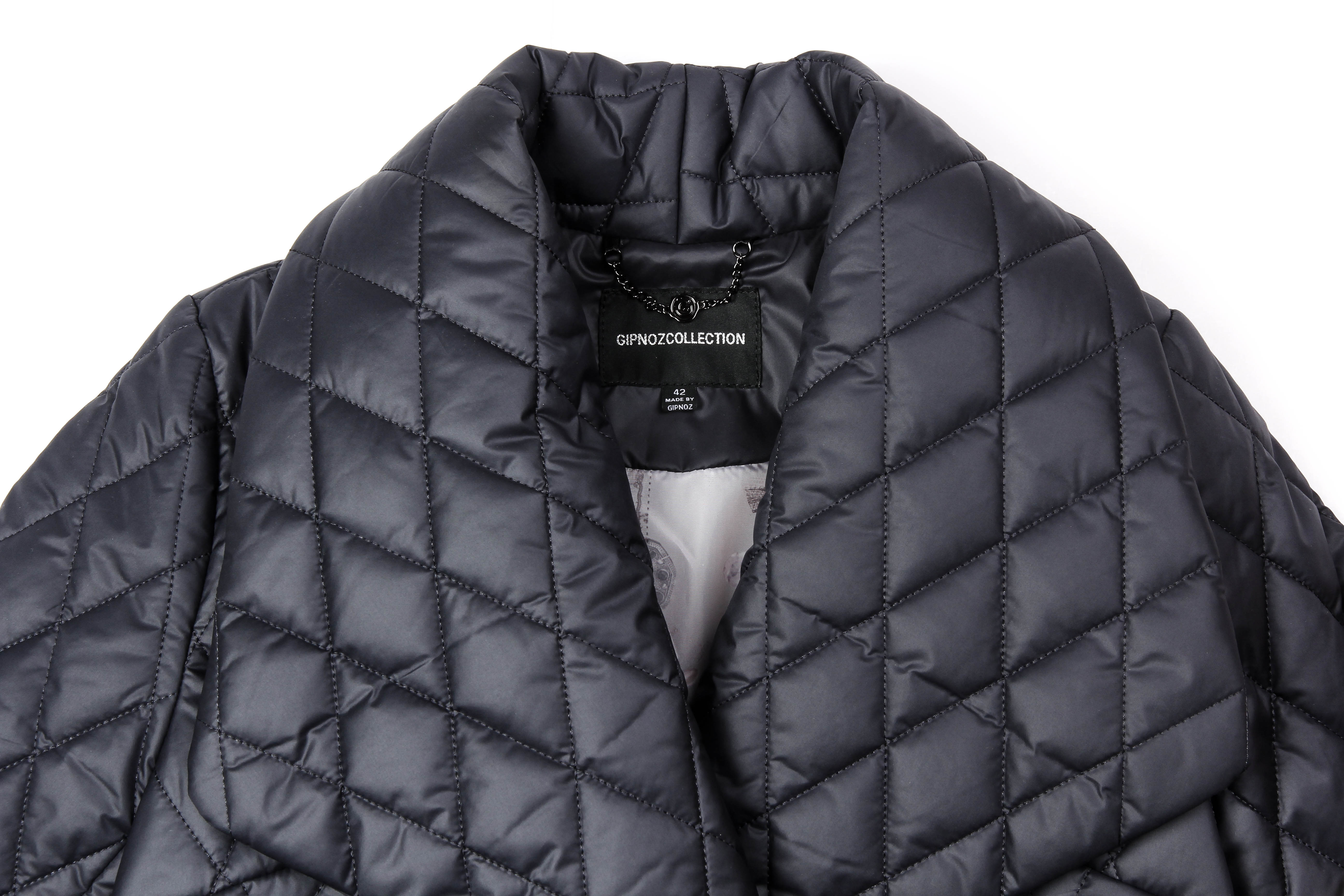 Эффектное и модное пальто в стеганом варианте, который создает «узор» в виде ромбиков, выглядит очень уютно и стильно. С таким пальто Вы сможете исполнить практичные и комфортные луки в стиле спорт-шик и стрит-стайл, особенно актуальные для повседневных выходов. Стеганые пальто можно с легкостью совместить, как с грубыми ботинками на плоском ходу, так и с сапогами на каблуке. Важно помнить, что с таким пальто Вам не страшны холод и непогода. Изделие прямого силуэта, с поясом, покрой рукава – втачной. Воротник «Апаш», сильно распахнутый и прямоугольный, с широкими открытыми лацканами. Эффектные отложные воротники вошли в списки модных акцентов еще в прошлом году, а в сезоне 2022 этот тренд приобретает новый размах! Застежка – потайные кнопки. Утеплитель термофин, плотность 100. черно-синий