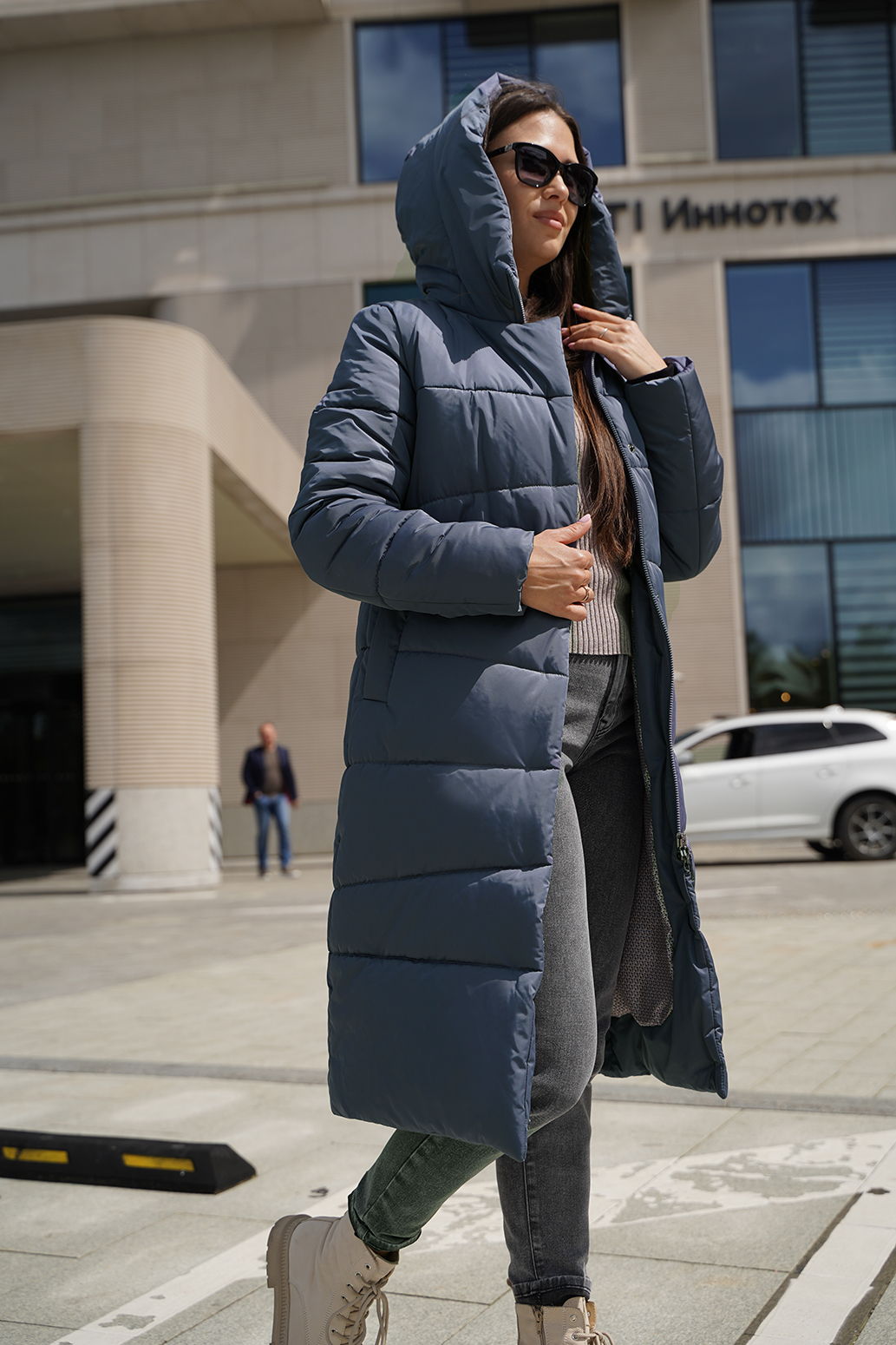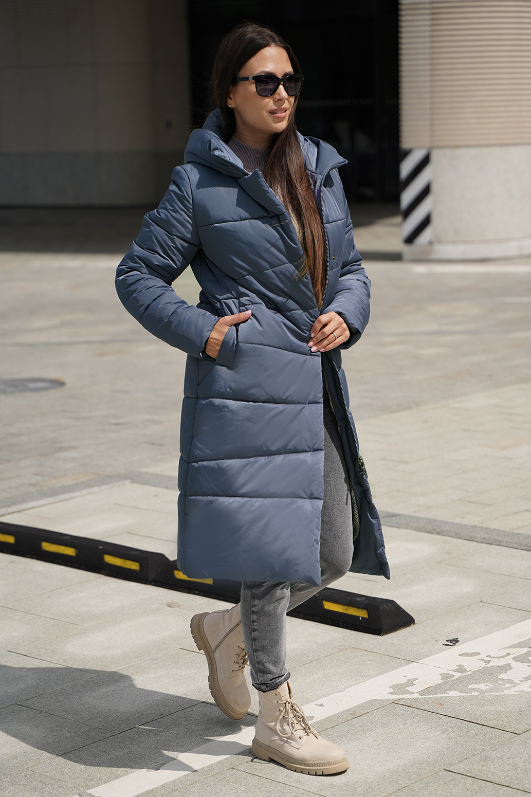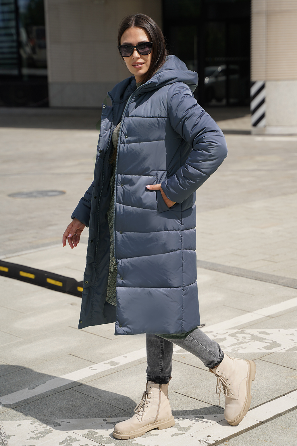 Зимнее пальто, создающего впечатление роскоши и изящества. Плотная ткань с трапециевидной стежкой придает изделию уникальный и структурированный внешний вид, а утеплитель из синтепона обеспечит тепло даже в самые морозные дни. Цельнокроенная планка с потайными кнопками и молнией с тракторным звеном выглядят аккуратно и современно, подчеркивая стиль и качество. Карманы-листочки добавляют нотки классики и удобства. Это пальто — словно уютное зимнее облако, защищающий и радующий глаз.