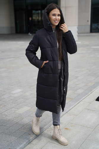 Зимнее пальто, создающего впечатление роскоши и изящества. Плотная ткань с трапециевидной стежкой придает изделию уникальный и структурированный внешний вид, а утеплитель из синтепона обеспечит тепло даже в самые морозные дни. Цельнокроенная планка с потайными кнопками и молнией с тракторным звеном выглядят аккуратно и современно, подчеркивая стиль и качество. Карманы-листочки добавляют нотки классики и удобства. Это пальто — словно уютное зимнее облако, защищающий и радующий глаз.