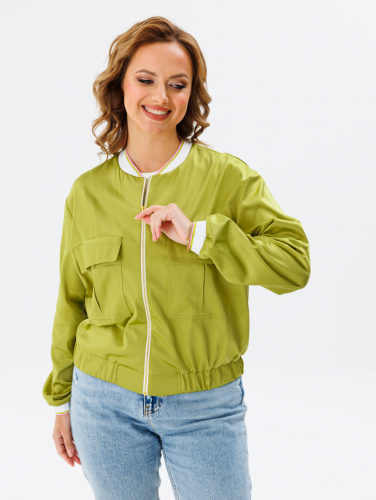Куртка-бомбер из фактурной экокожи кожи с анималистичным рисунком. Детали: прямой силуэт, воротник-стойка, пояс переда и спинки на резинке, застежка на потайные металлические кнопки, рукава длинные с высокими обтачками по низу, которые при необходимости можно подвернуть; большие накладные карманы по переду, спинка со средним швом, куртка на подкладке.