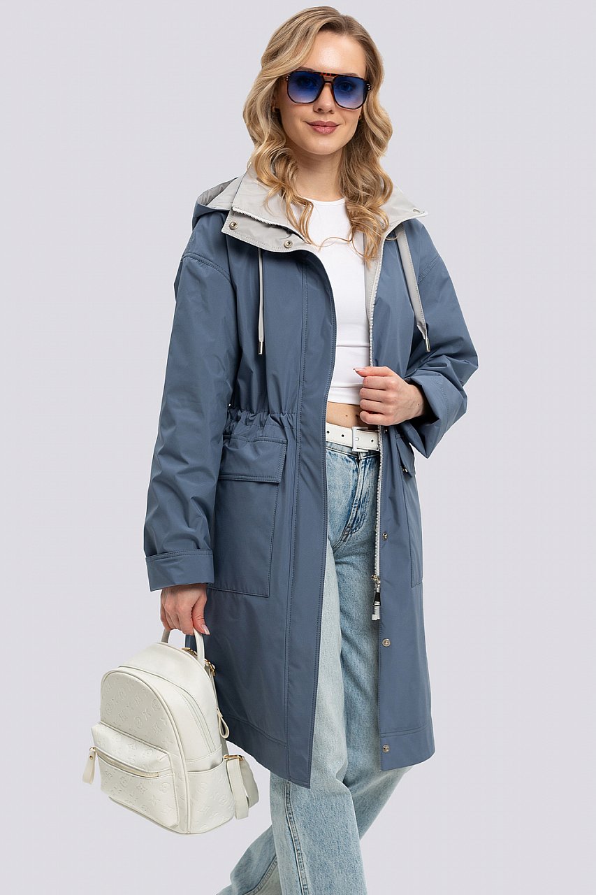 Женский плащ в полуспортивном городском стиле. Спущенная линия плеча, умеренный объем, прямой
