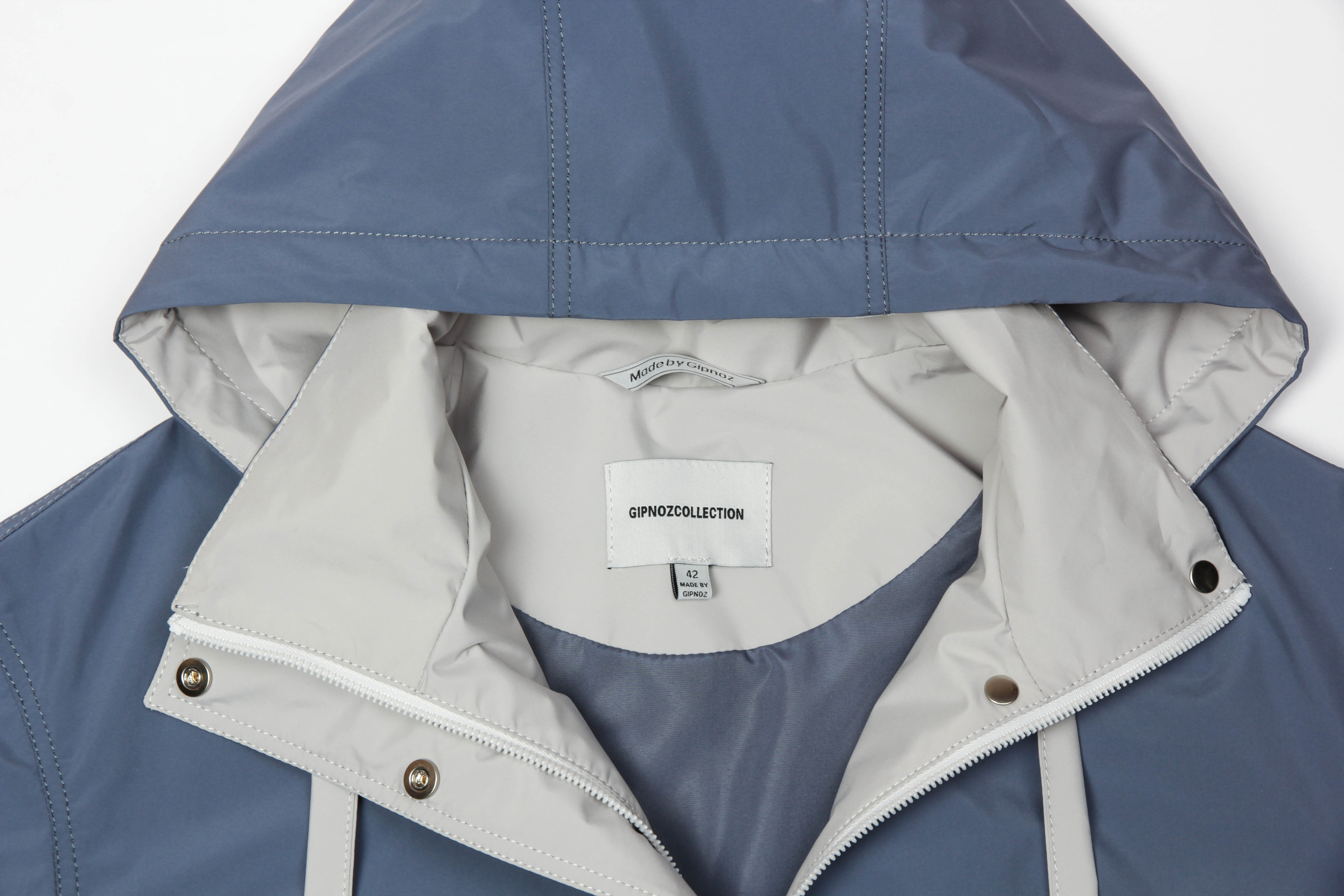 изделия. Капюшон отстегивается, рукав загибается на манжет. Застежка на молнию, прикрытую планкой. В
