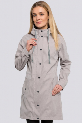 Наверняка многие модницы согласятся, что одежда должна быть не только стильной, но и функциональной. Такие качества отлично сочетаются в женском плаще с капюшоном. Плащ прямого силуэта, по талии кулиска.Особого внимания заслуживают тесьма и фирменные кнопки. Центральная застежка на молнию, закрытую планкой. На рукавах регулирующиеся манжеты. Спинка изделия длиннее передней части на 5 см. Ткань матовая. Состав ткани: 50% хлопок, 30% вискоза, 20% полиэстер. серый