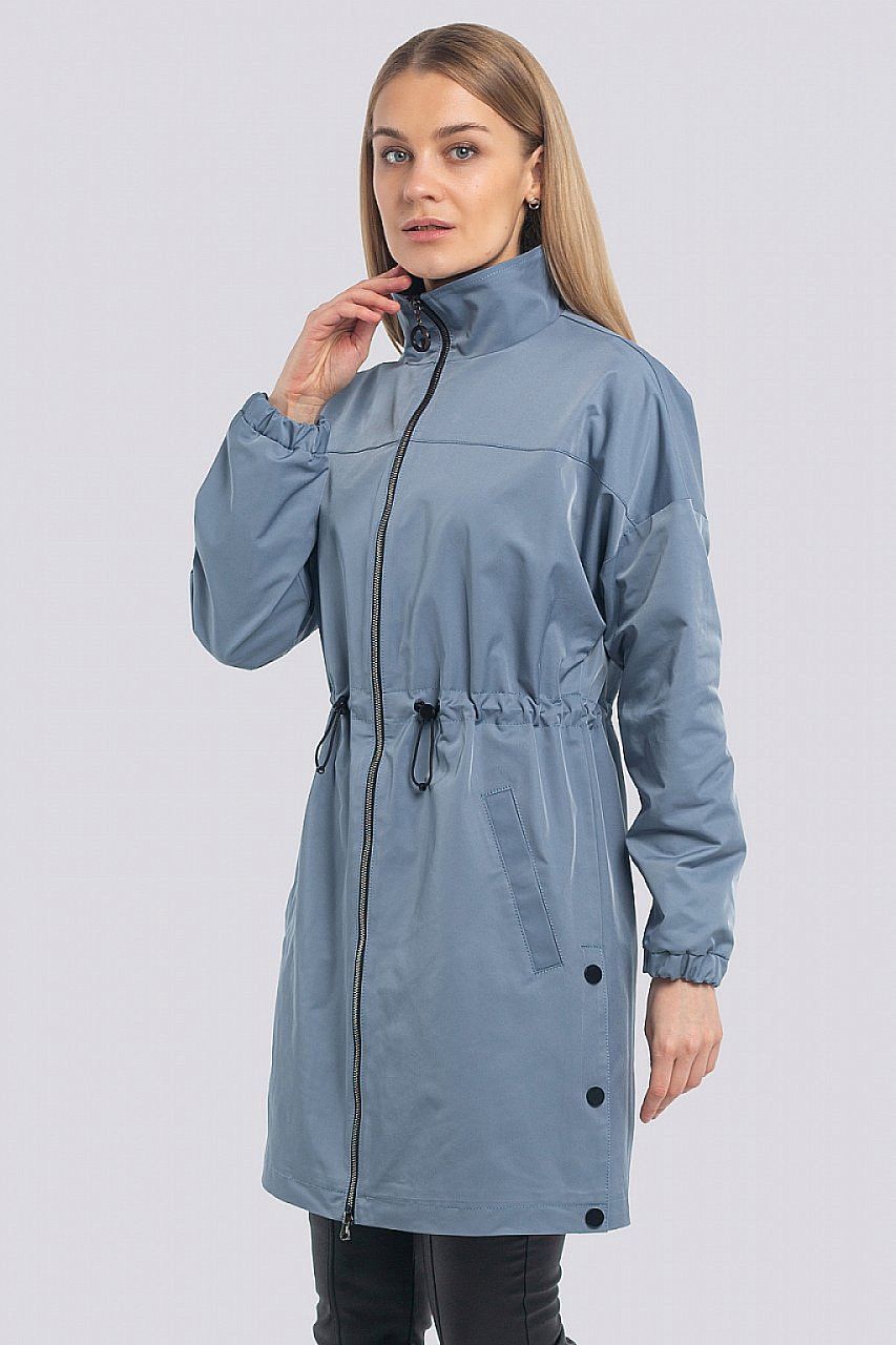 Женский плащ в спортивном стиле– оптимальный выбор для дождливого, но теплого сезона, такая вещь станет незаменимым элементом гардероба девушки-тинейджера, спортсменки или модной бизнес-леди. Плащ свободного объема со спущенной линией плеч. Застежка на «молнию», воротник –стойка. По талии кулиса, низ рукава на резинке. По боковым швам шлицы на кнопках. Состав ткани: 50% хлопок, 30% вискоза, 20% полиэстер. джинс