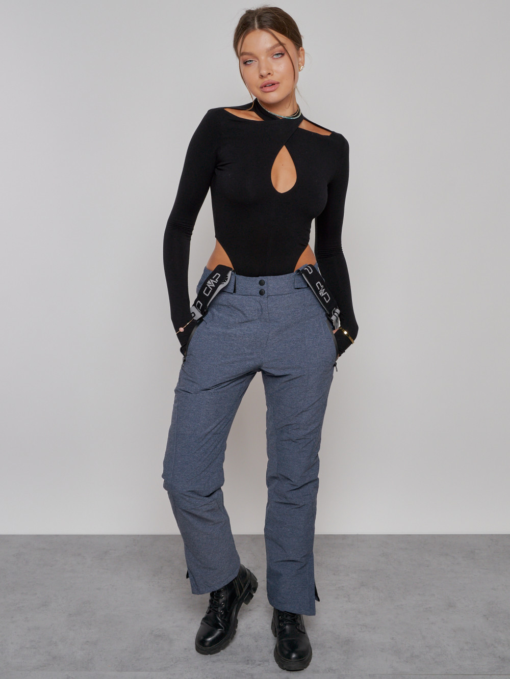 Полукомбинезон утепленный женский зимний горнолыжный голубого цвета 911Gl