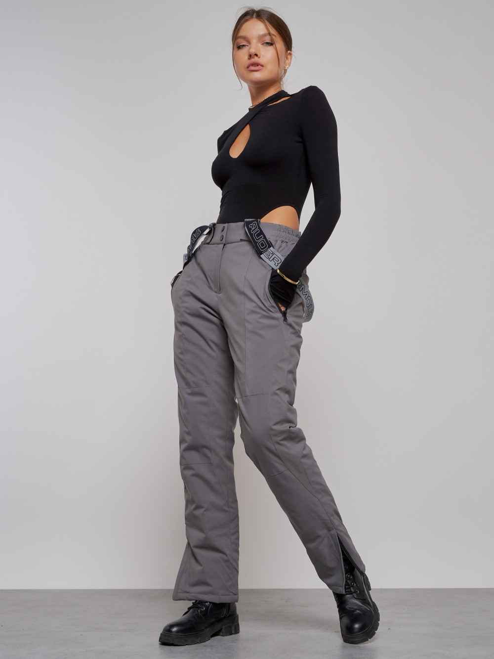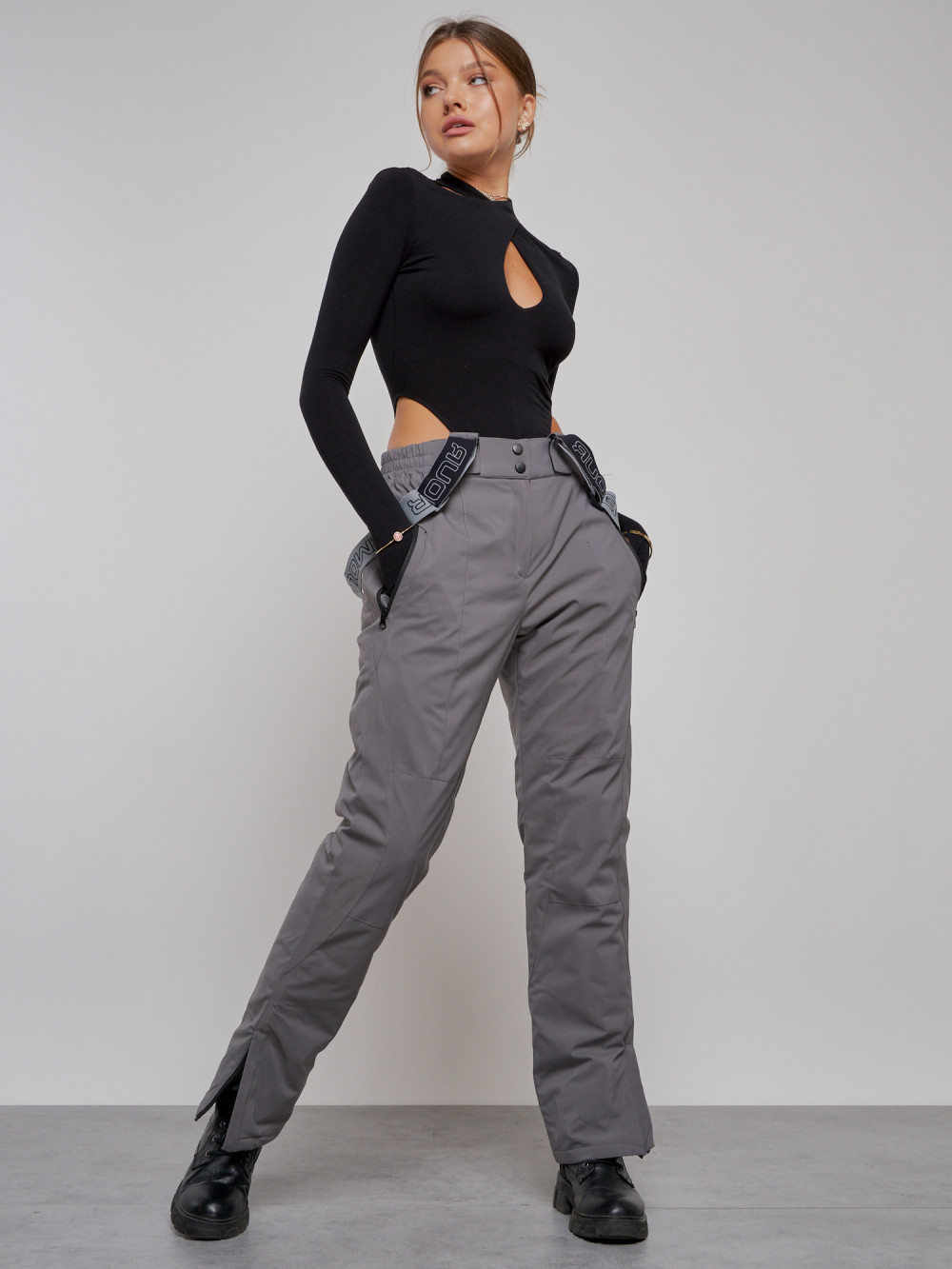 Полукомбинезон утепленный женский зимний горнолыжный серого цвета 526Sr