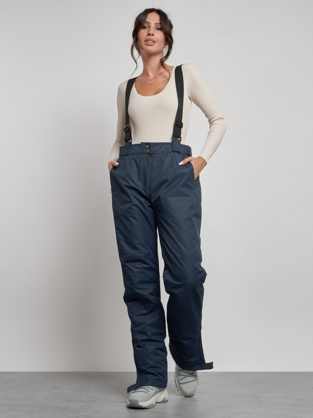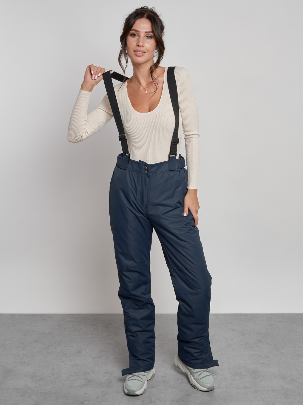 Полукомбинезон утепленный женский зимний горнолыжный темно-синего цвета 7607TS