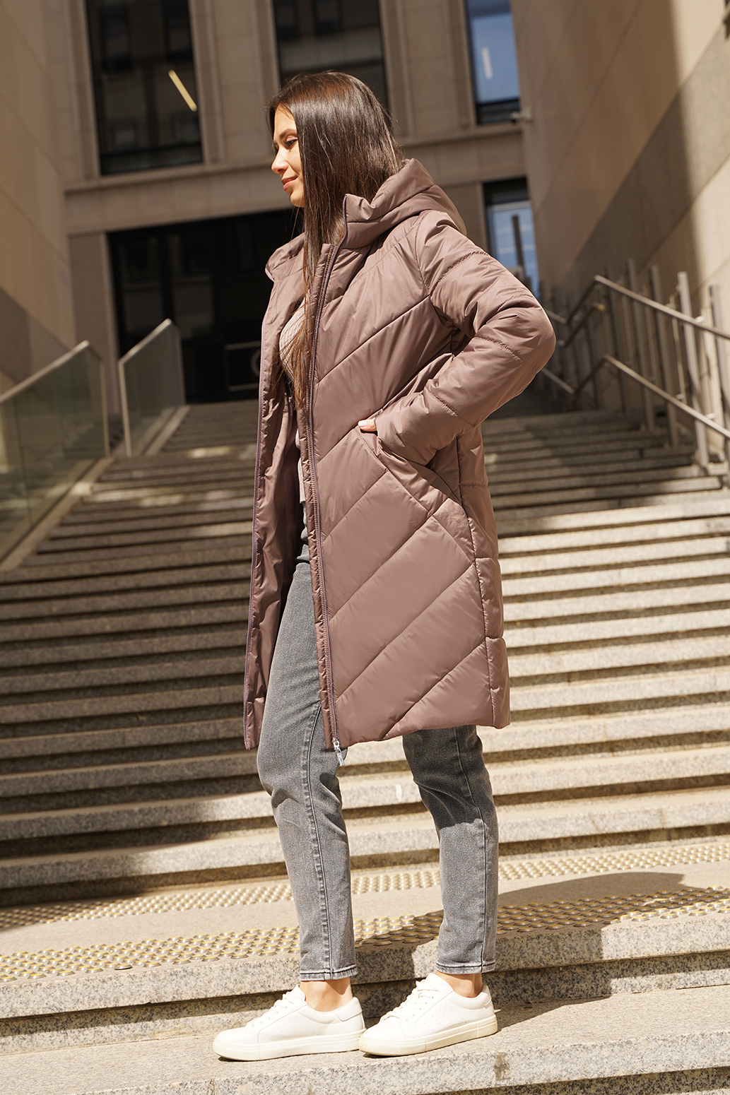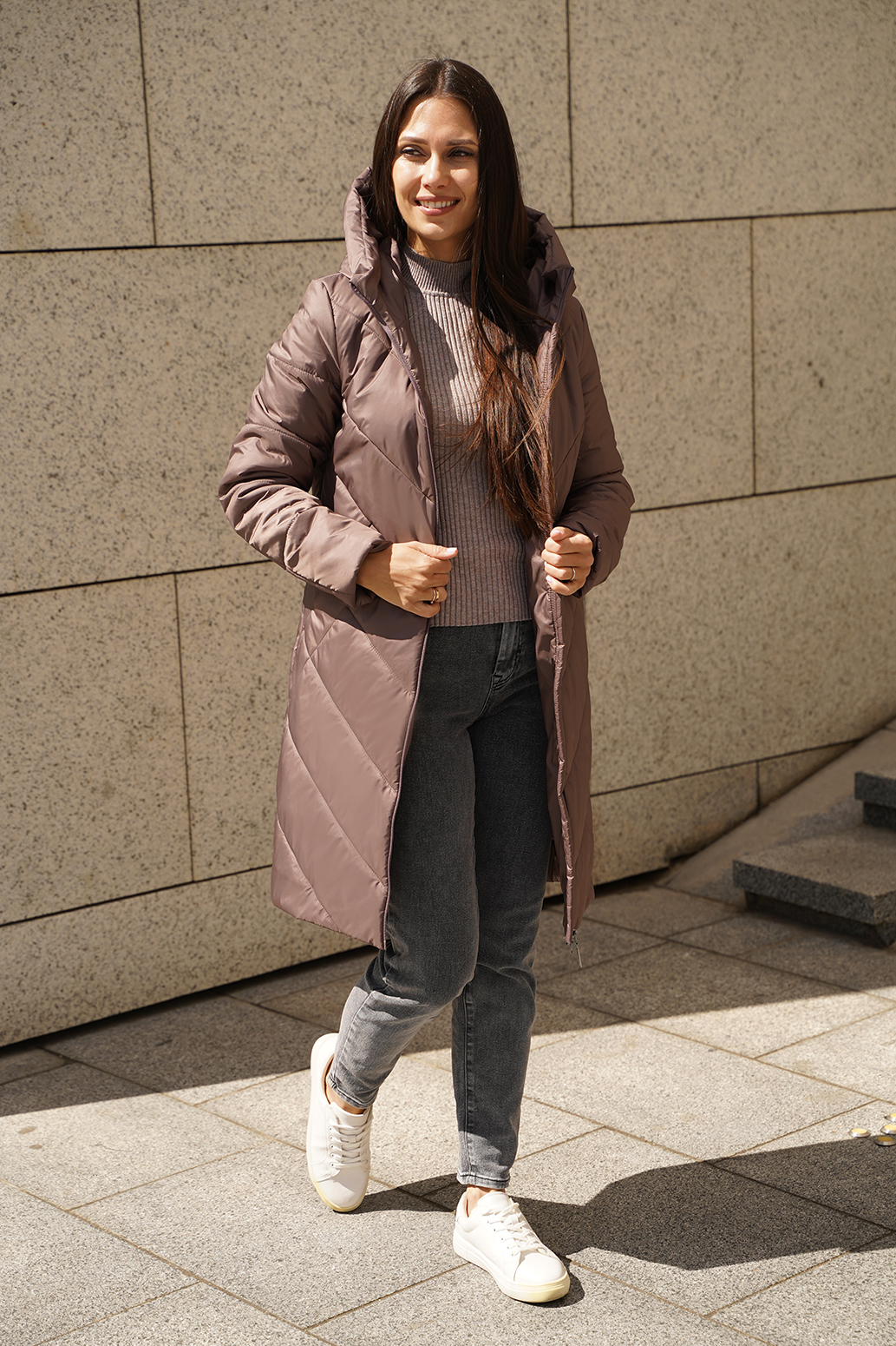 Элегантное и современное пальто с видовой витой молнией придает образу динамичность и изящество, создавая эффект изогнутых линий, а оригинальный карман в шве добавляет уникальности и аккуратности к силуэту. Косая стежка не только служит декоративным элементом, подчеркивающим структуру изделия, но и обеспечивает дополнительную прочность и теплоизоляцию. Такое пальто станет не только стильным акцентом в гардеробе, но и практичной вещью для прохладной погоды, гармонично сочетая в себе оригинальность и функциональность!
