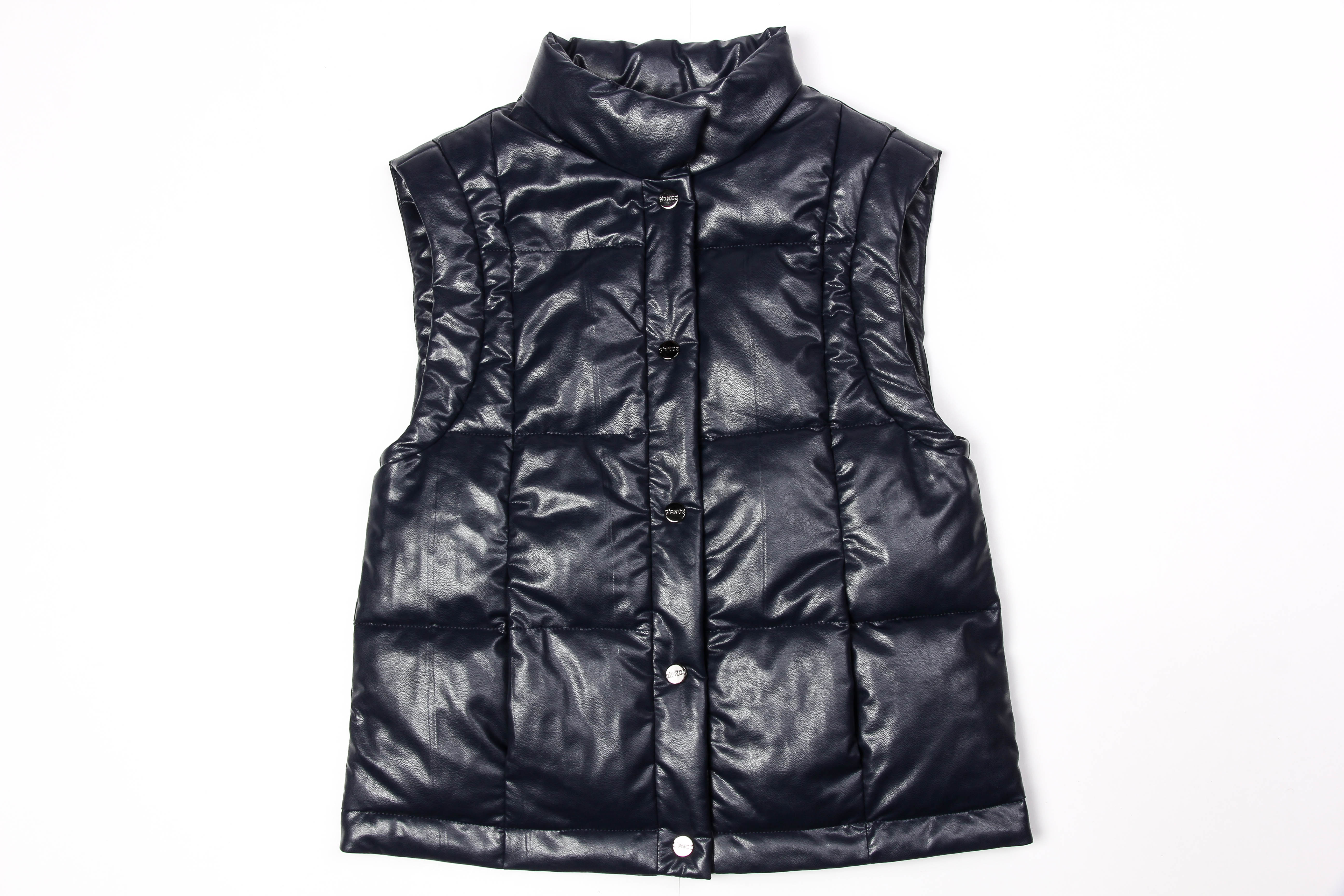 Именно этот предмет гардероба считается одним из главных трендов наступающего сезона. Жилет отлично дополнит любой стильный аутфит. Жилеты из экокожи сегодня на пике своей популярности. Жилет прямого кроя на синтепухе. Застежка-планка на кнопках. На переде два кармана в швах. Внутри на подкладке один внутренний карман. Воротник стойка. По низу кулиса, которая поможет отрегулировать объём по низу изделия. Утеплитель синтепух-синтетический пух. темно-синий