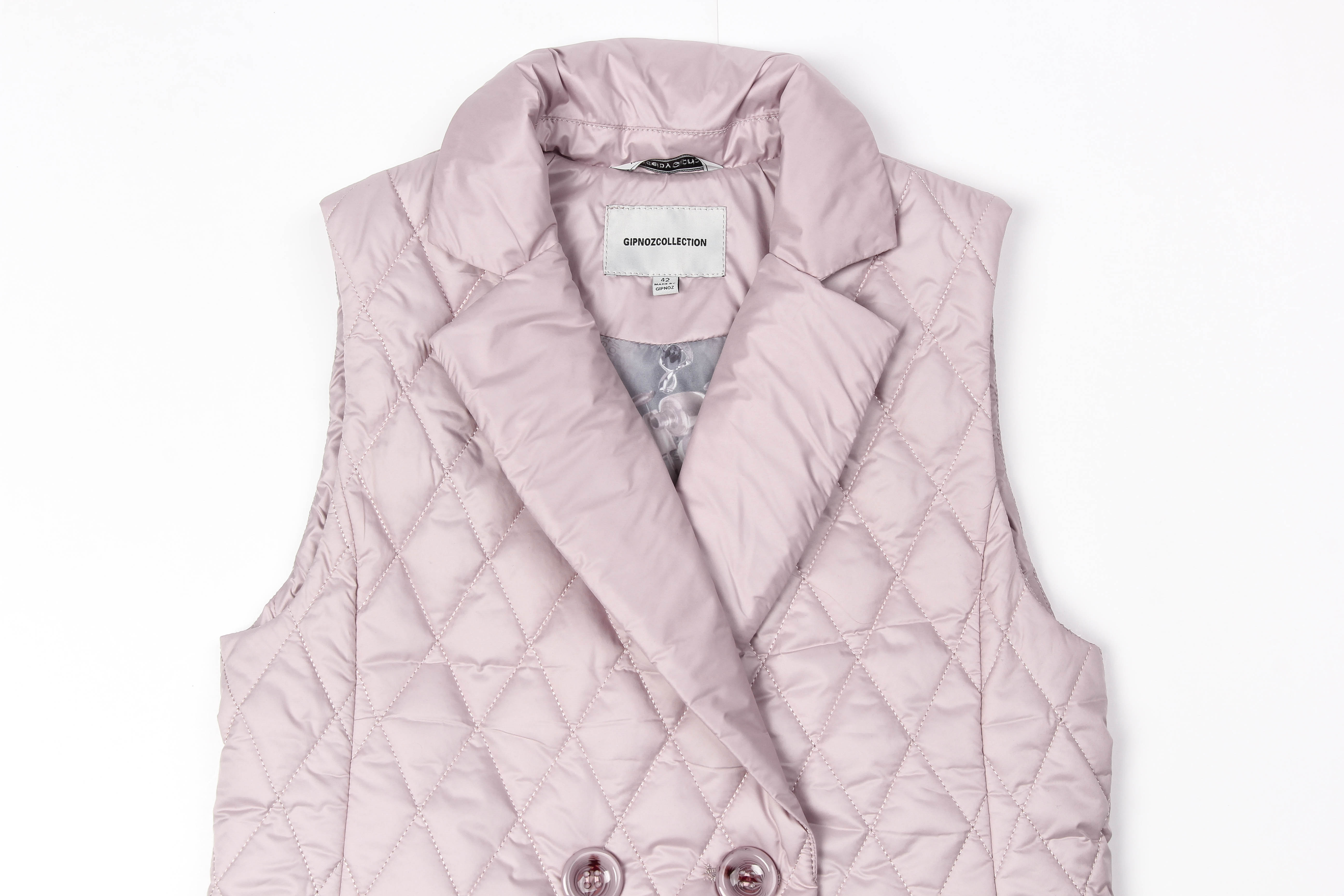 Теплые женские жилеты — не новый тренд, тем не менее его популярность усилилась, благодаря универсальности, практичности этой одежды среди других фасонов. Удлиненный жилет из стеганой ткани смотрится стильно и будет согревать вас в холодную погоду. Жилет прямого силуэта с английским воротником. Застежка двубортная на петли и пуговицы. Спереди карманы в швах и декоративные клапаны. На спинке – декоративный пояс на пуговицах. «Изюминку» в модель вносит сочетание стеганой ткани и деталей из гладкой ткани. Утеплитель термофин, плотность 100. светло-лиловый
