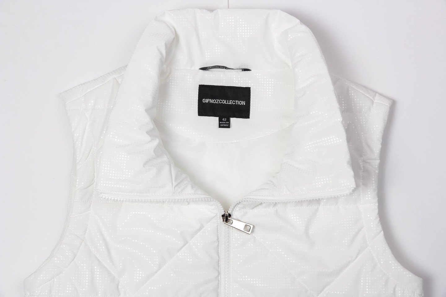 Жилетка женская утепленная - трендовый выбор для модных и стильных женщин. Жилет подходит для весны и осени, когда нужна теплая, но легкая одежда. Такой жилет-отличный атрибут женского гардероба для путешествий. Благодаря утепленному и стеганому дизайну, жилет обеспечивает комфорт и защиту от холодных осенних и весенних ветров. Утеплитель термофин, плотность 150. белый 3d