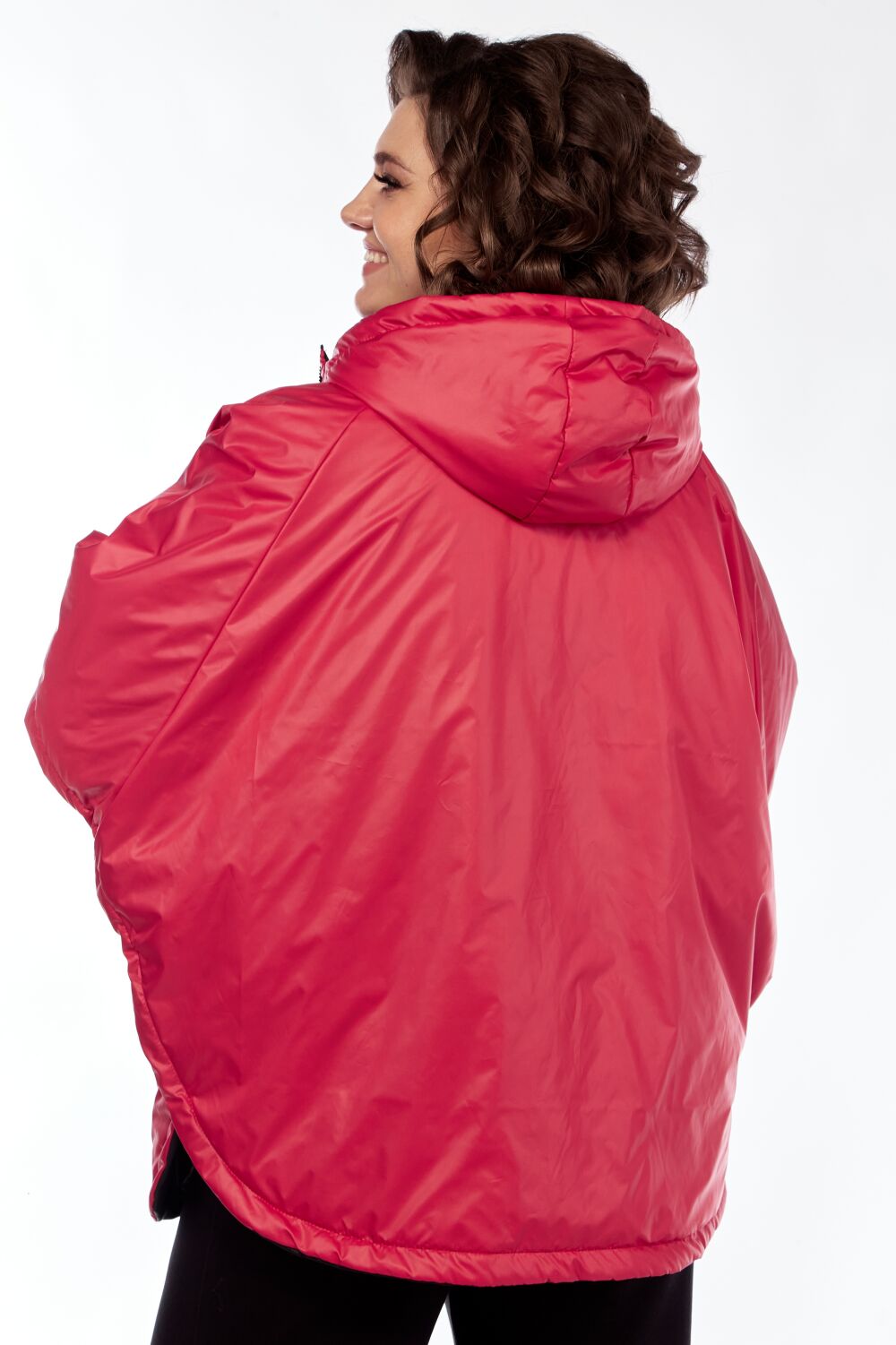 Пончо 2-ух стороннее с центральной бортовой застежкой "молния". Черная сторона: по переду и спинке выполнена горизонтальная стежка. Перед с накладными карманами "кенгуру". Вторая сторона: перед с боковыми прорезными карманами "с листочкой". По боковым швам застежка на три кнопки образует разрезы округлой формы. Воротник-капюшон. По краю отделочная строчка на 2,5 см.